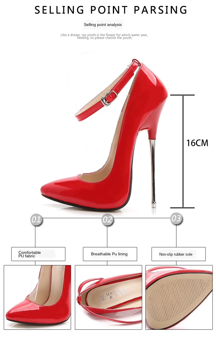 Это анатомическое безумие для bdsm... Ширина туфель (7.5 см) и высота каблука (16 см) для всех размеров одинакова, как для 36, так и для 46, хотя с увеличением размера должна увеличивается и ширина стопы. Качество изготовления отличное. Пред покупкой хорошо подумайте, ведь их даже больно одевать...
