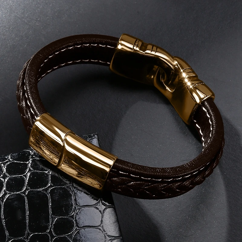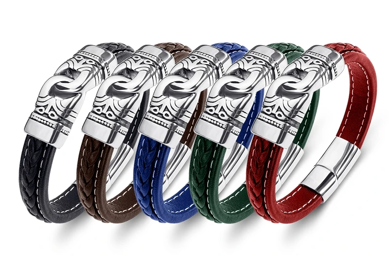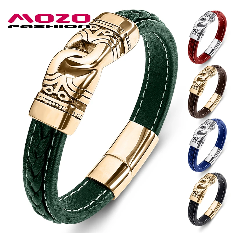 Браслет MOZO мужской плетеный из кожи, Ювелирное Украшение в стиле панк, ручная работа, модный браслет с застежкой из нержавеющей стали, подарок 015