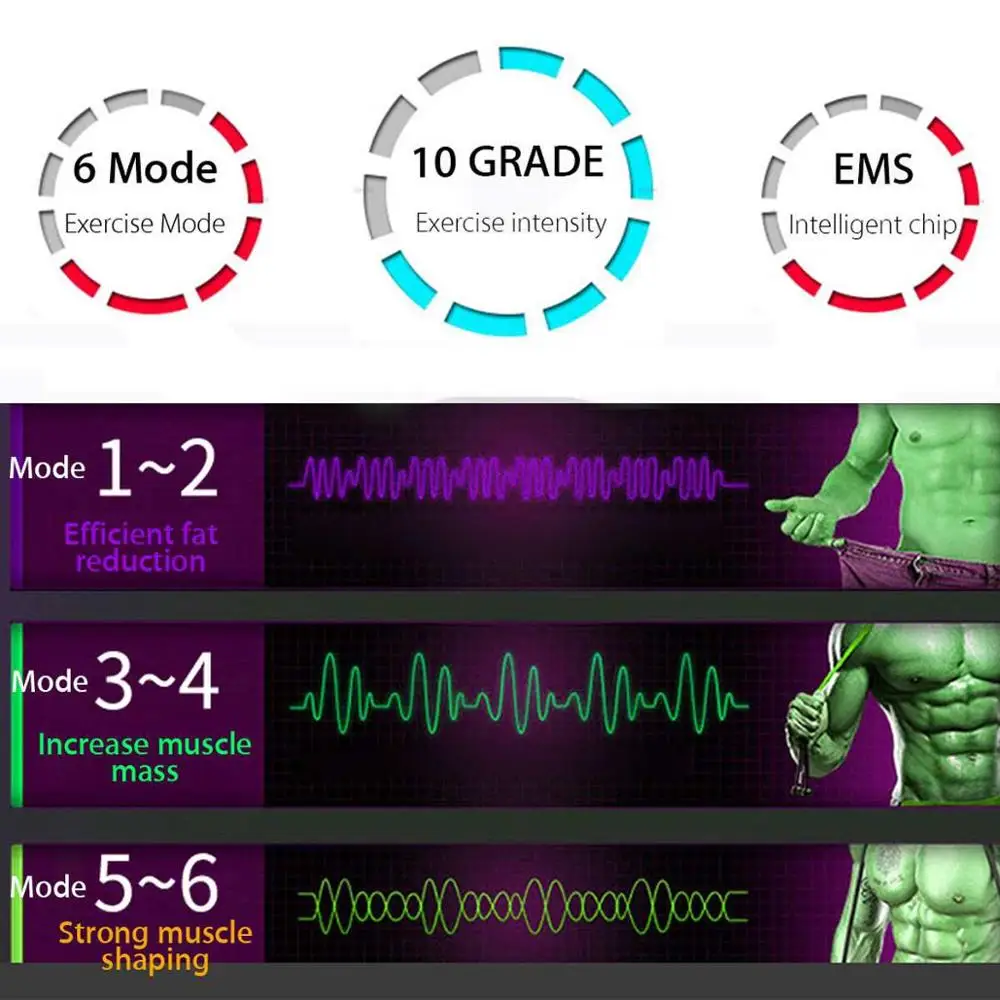 EMS (электрическая стимуляция мышц) Технология через текущее стимулирование, непосредственно к сигналу к мышцам, для продвижения мышечного движения. Никакого вреда для человеческого тела, и вы будете наслаждаться научным и здоровым фитнесом.-В комплект входит литиевая батарея и usb-зарядка. ЖК-дисплей для отображения различных режимов и уровня интенсивности.-Мягкая пу подкладка удобна и аккуратно облегает контуры вашей кожи, в то время как электроды с использованием шелковой печати и проводящих гелевых листов распределяют импульсы эффективно-Вы можете получить более плотные и сильные мышцы и идеальную фигуру после последовательного использования этого продукта в течение 6-8 недель. Разработан с эргономикой, ориентированной на мышцы брюшного пресса. Закрепите тренажер в том положении, в котором вы хотите укрепить мышцы.-2 раза в день и около 30 минут в день тренировок, упражнений и мышц. С учетом контуров ваших abdo мужчин и подходит для мужчин и женщин.