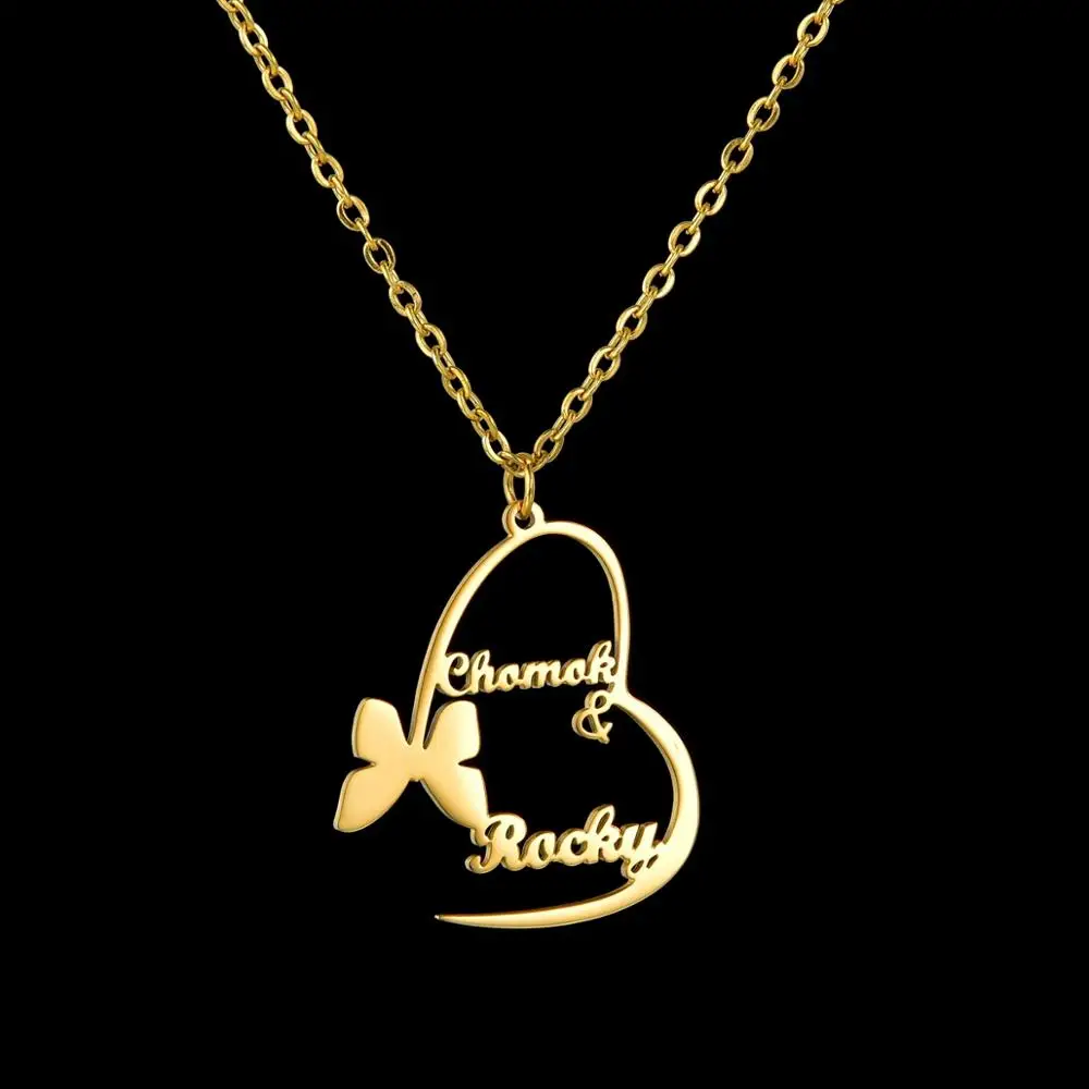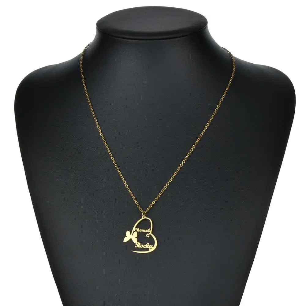 Название: Goxijite трендовые подвески в виде сердца бабочки на заказ именные ожерелья для женщин Персонализированные Золотые сердца чокер ювелирные изделия аксессуары