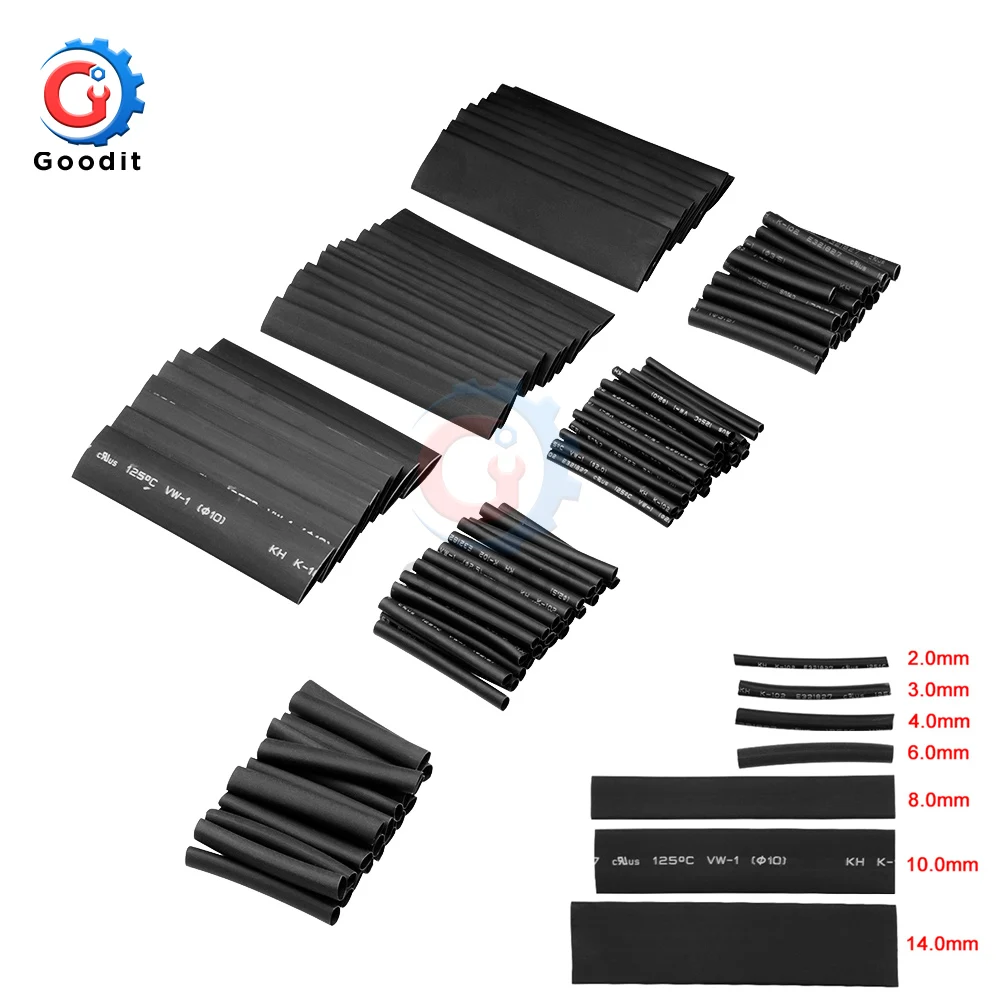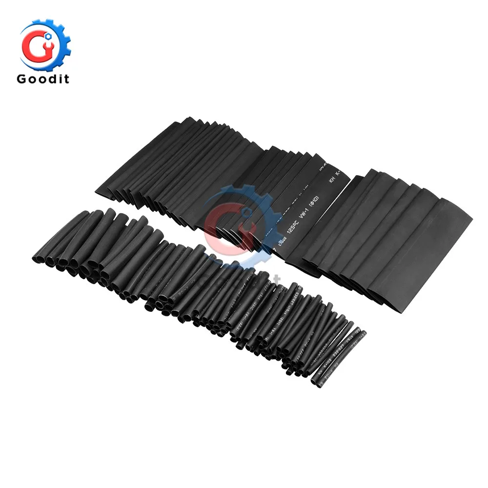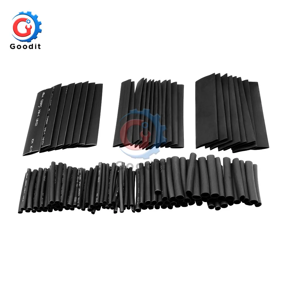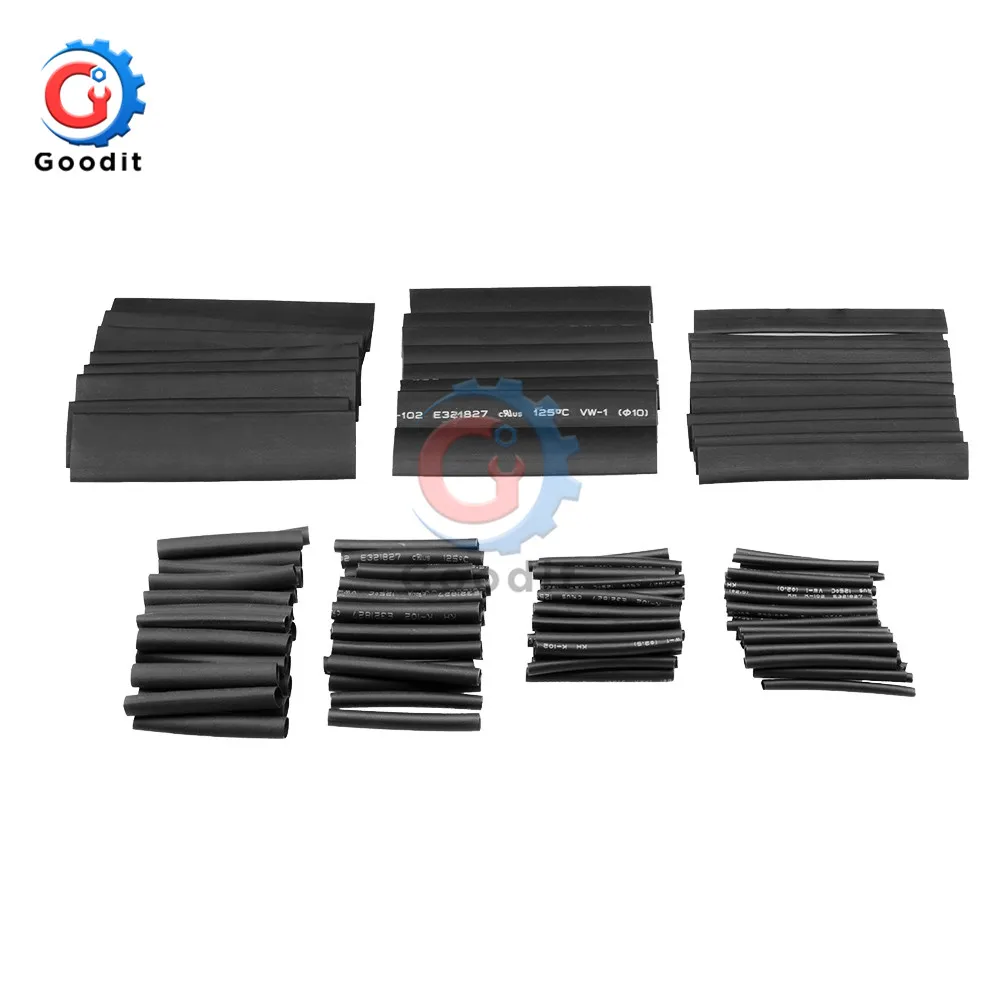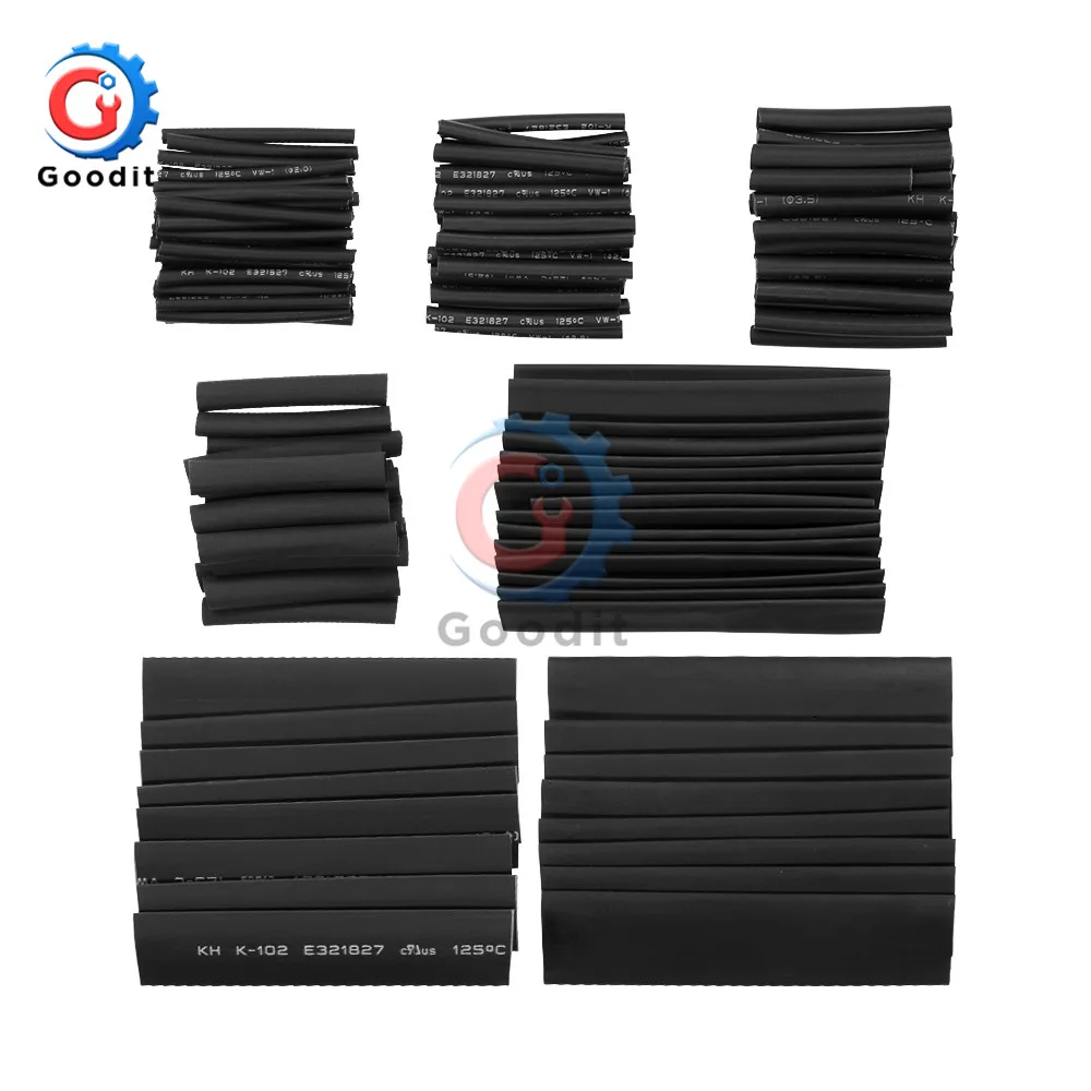 127 шт.лот полиолефиновые автомобильные комплекты трубок для электрических кабелей, термоусадочная трубка, трубка для обертывания проводов, в ассортименте 7 размеров 2:1
