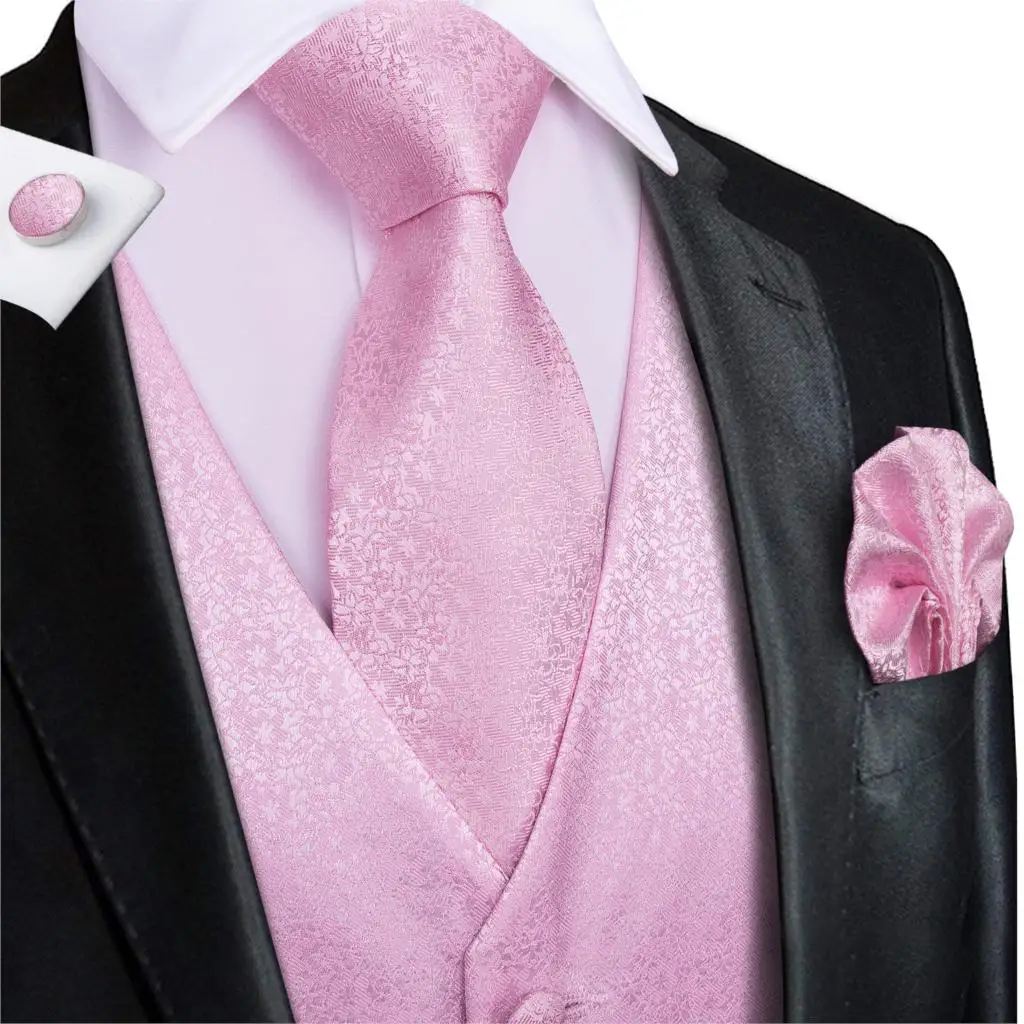 Hi-Tie мужской жилет костюм розовый 100% шелк для свадьбы персиковый высококачественный коралловый жилет для мужчин Карманный платок запонки набор