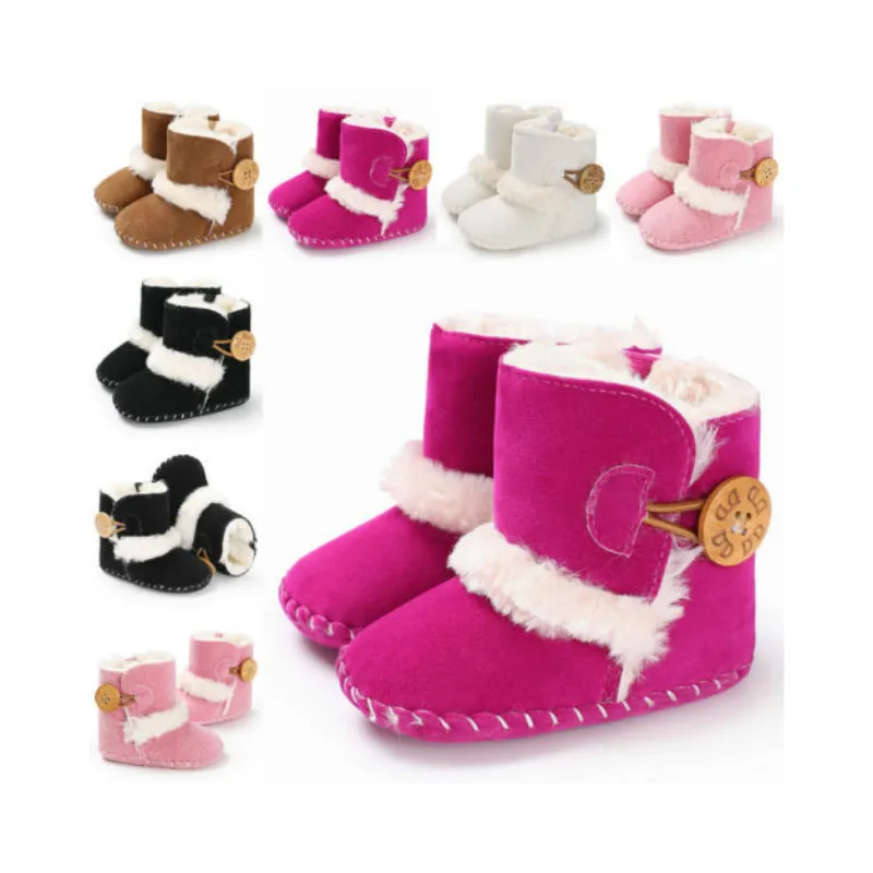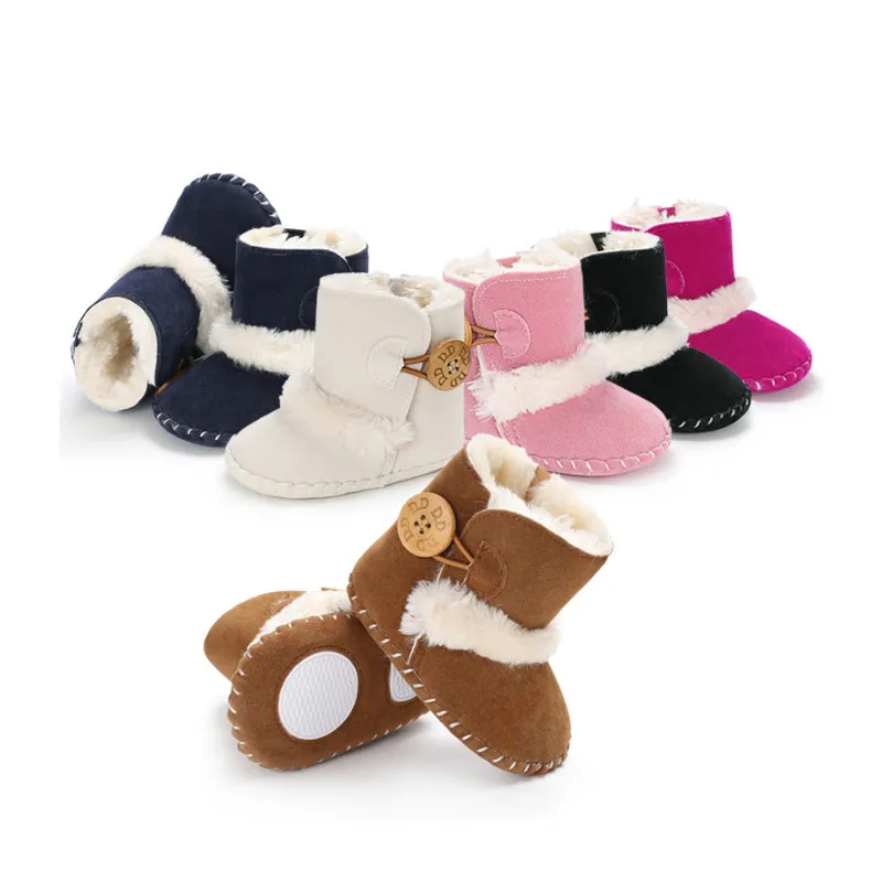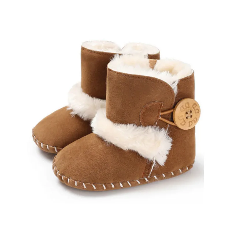 Модные детские зимние ботинки для младенцев, детские зимние ботинки для маленьких девочек и мальчиков, теплые ботинки с мягкой подошвой, обувь для первых шагов, плюшевые однотонные хлопковые ботинки