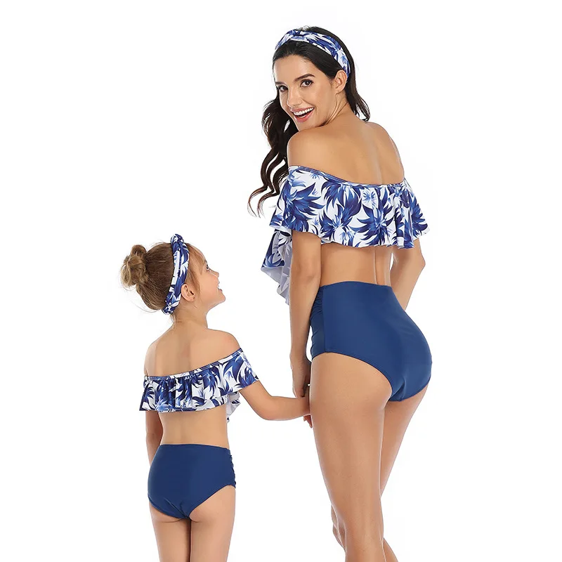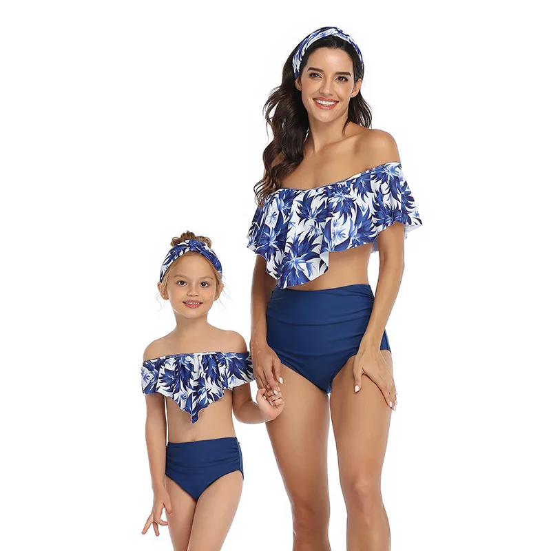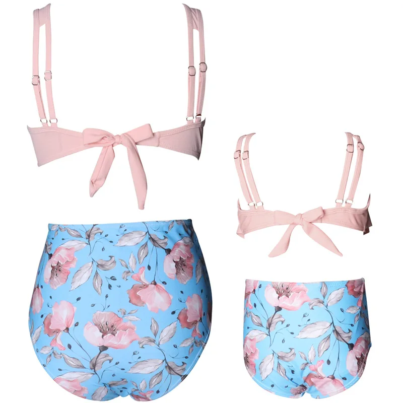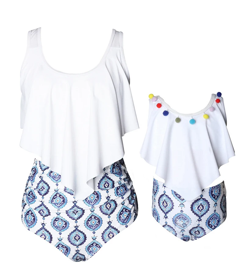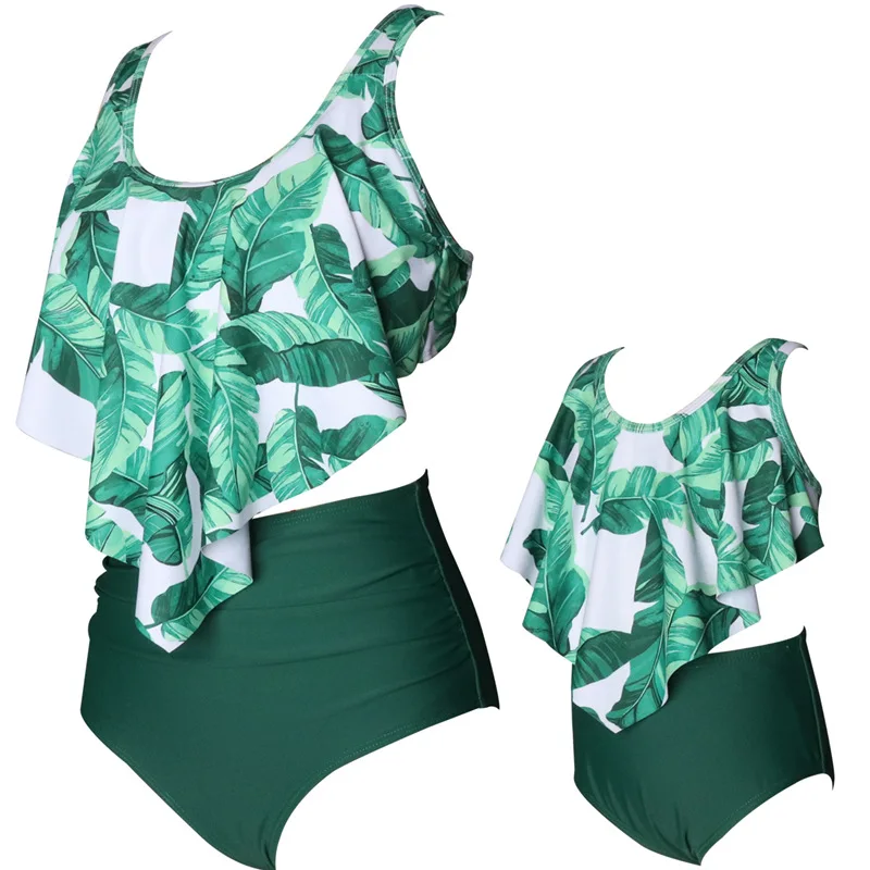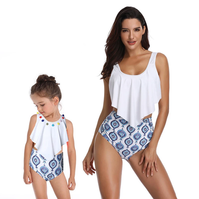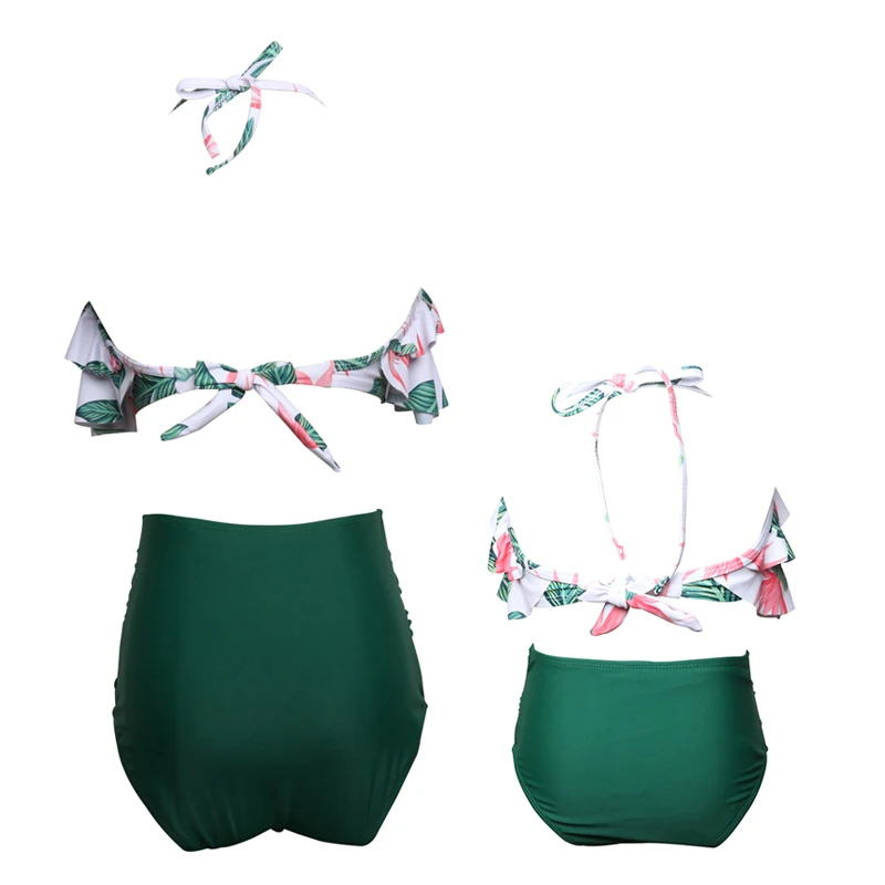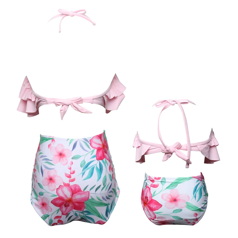 Купальник из двух частей с воланом и высокой талией для родителей и детей, купальник для матери и дочери для девочек, семейная Одинаковая одежда, детское бикини