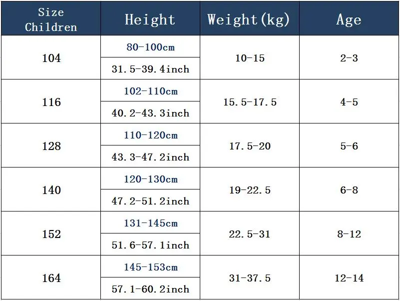 SizeS M L XL 104 116 128 140 150 164