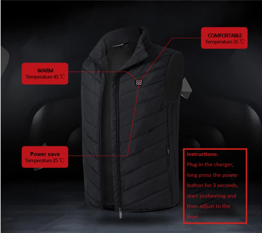 Мужской женский зимний гибкий электрический термальный жилет 15 цветов рыба Туризм европейский размер S-4XLOutdoor USB жилет с инфракрасным обогревом