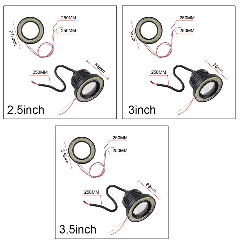 Автомобисветильник Противотуманные фары ангельские глазки, 12 В, 10 Вт, универсальные светодиодсветодиодный дневные ходовые огни 64 мм, 76 мм, 89 мм, высосветильник, автоматический поворотный фонарь