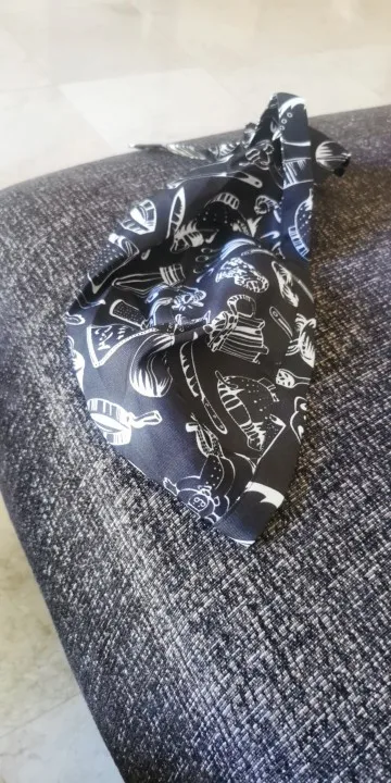 бандана из синтетики. У продавца заявленно хлопок. получили быстро. Но к сожалению синтетика. Повару на кухне целый рабочий день в синтетике?
