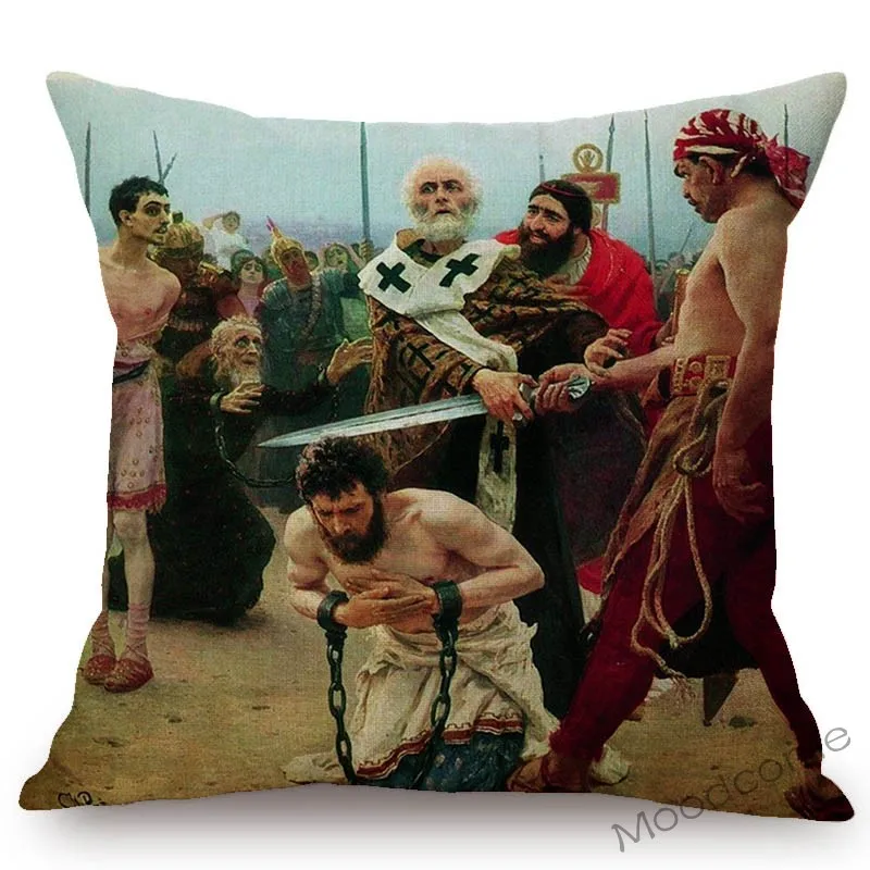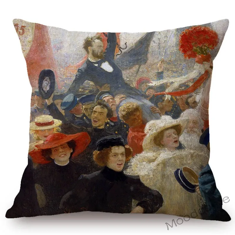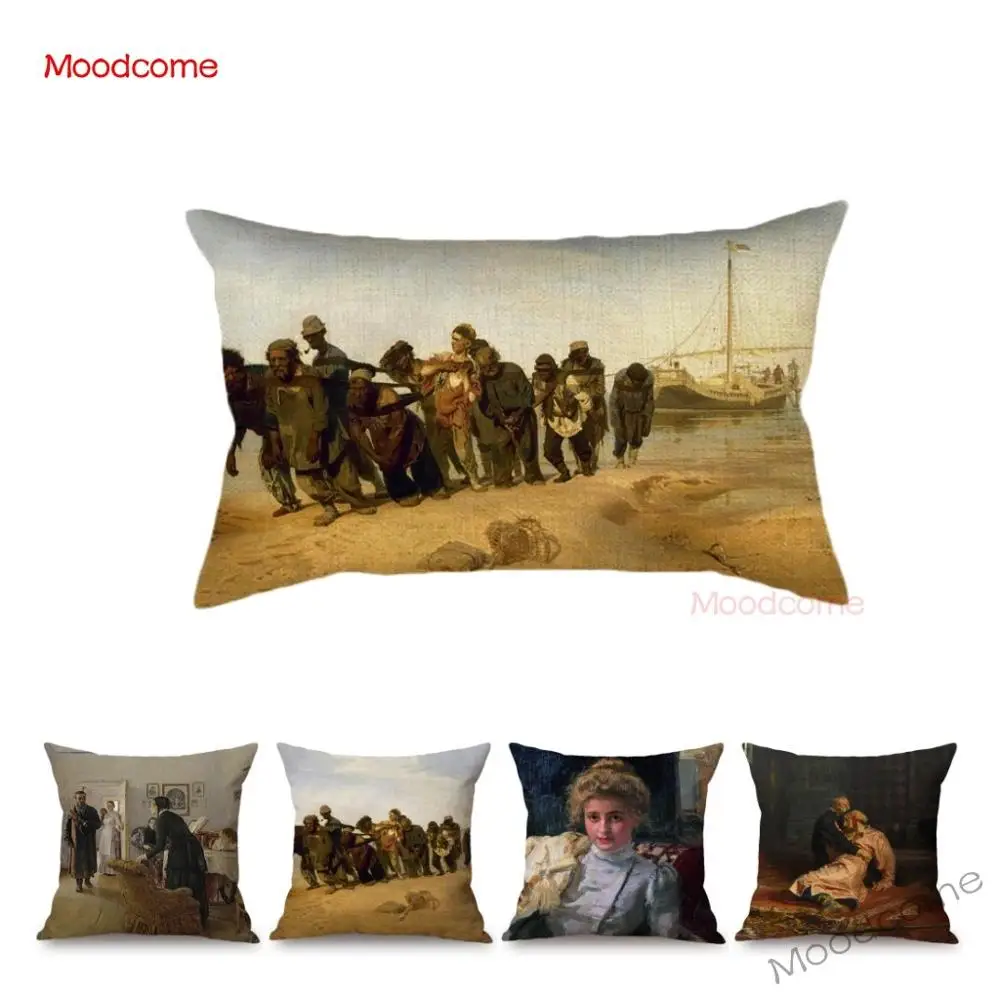 Наволочка для диванной подушки, льняная, с рисунком картины, картины, искусство, Декор