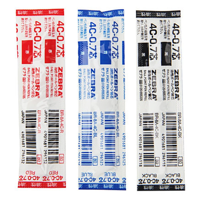Зебра металлический стержень шариковой ручки основной производитель Япония Модель: 4c-0.7 запасной Цвет: черный, синий, красный, зеленый материал: пластик Размеры: прибл записи ширина линии: 0,7 м