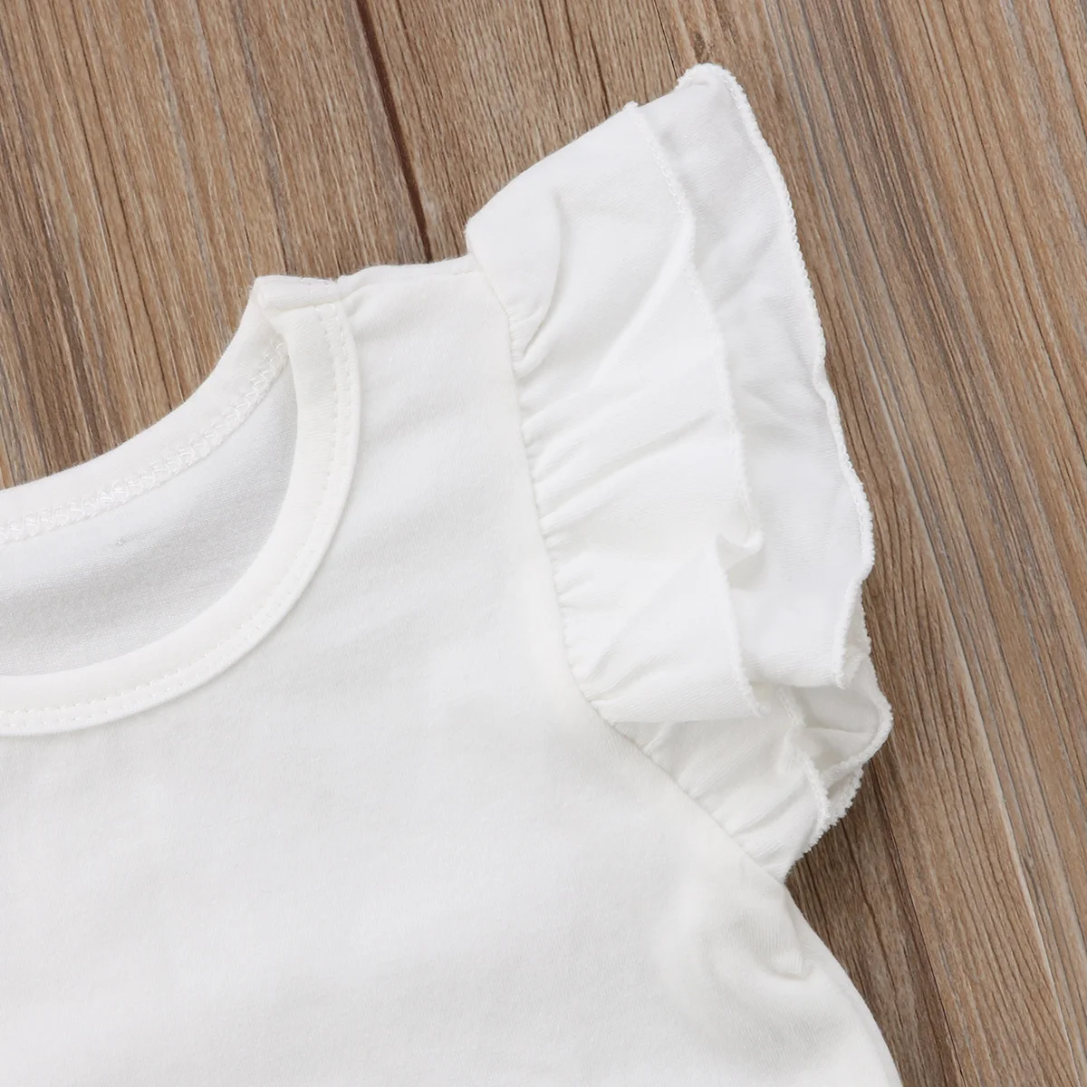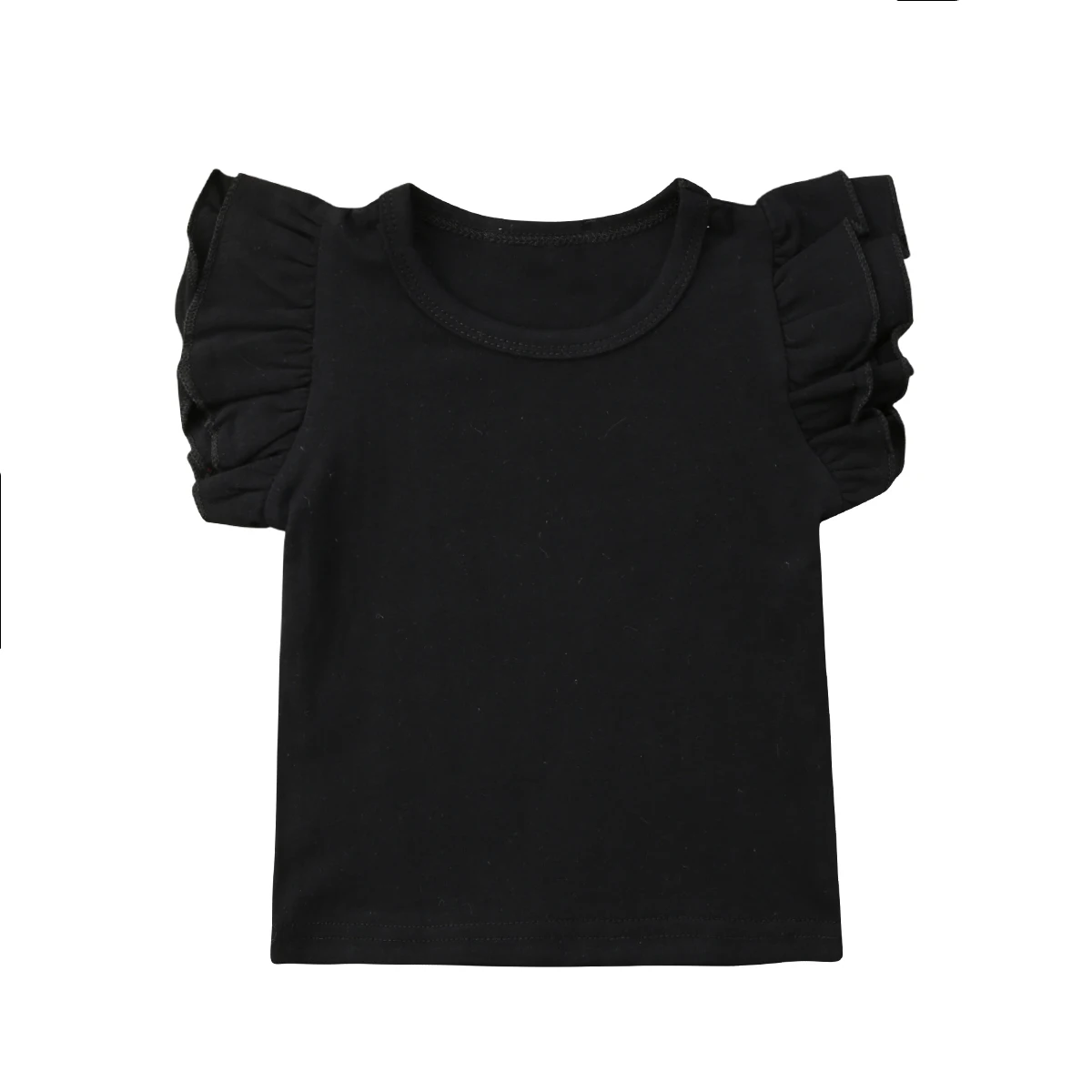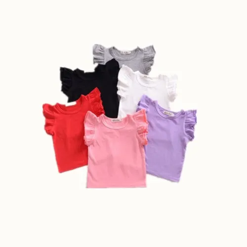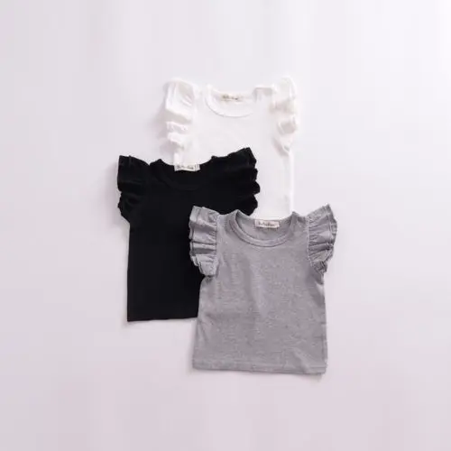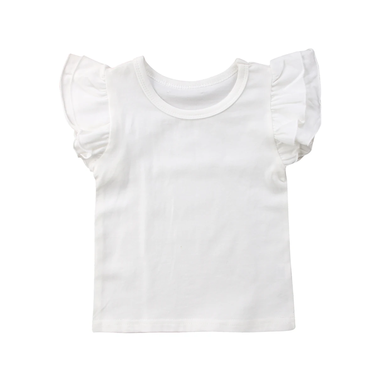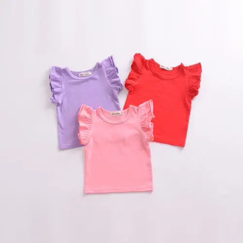 2018 летняя Однотонная футболка для маленьких девочек, детская одежда с оборками на рукавах, футболки для маленьких девочек, детские футболки, однотонная оптовая продажа