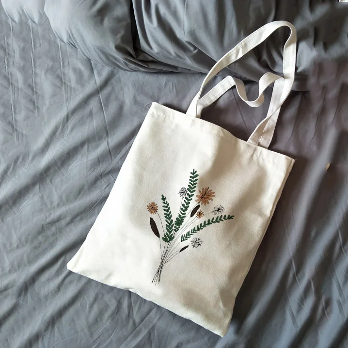 Холщовые сумки с цветочными буквами A, B, C, D, E, F, G, женская су...