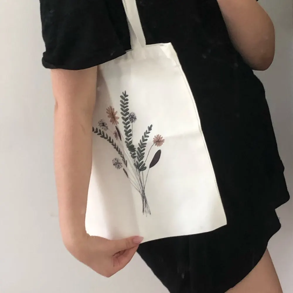 Женская сумка-шоппер Harajuku, Холщовая Сумка с цветочным принтом, ...