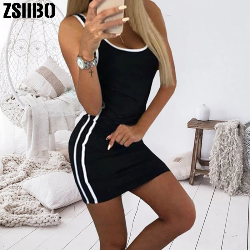 Сексуальная Клубная одежда ZSIIBO, черное облегающее мини-платье без рукавов с летнее платье больших размеров, женские платья, Прямая поставка