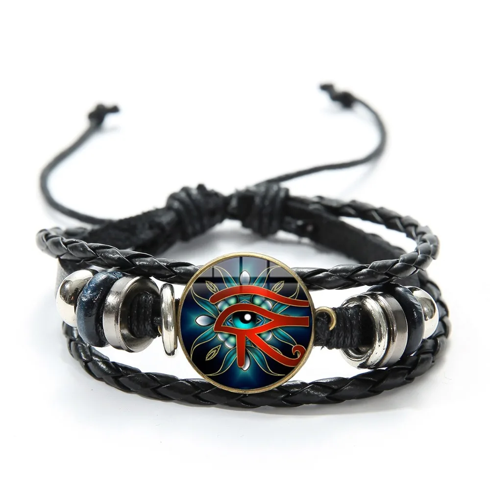 Винтажный кожаный браслет в древнем египетском стиле Horus Eye, пле...