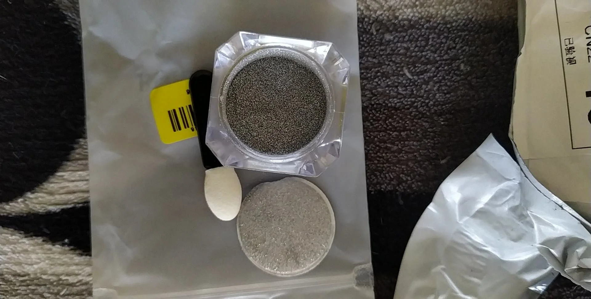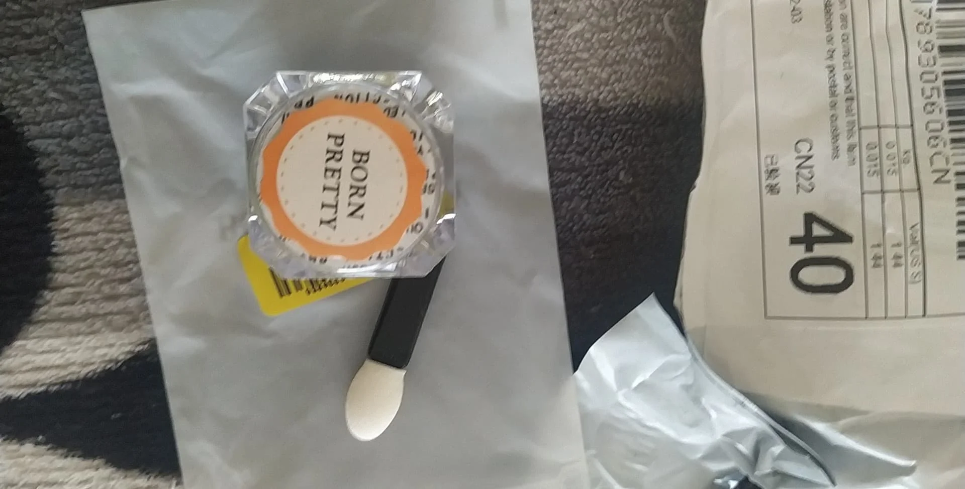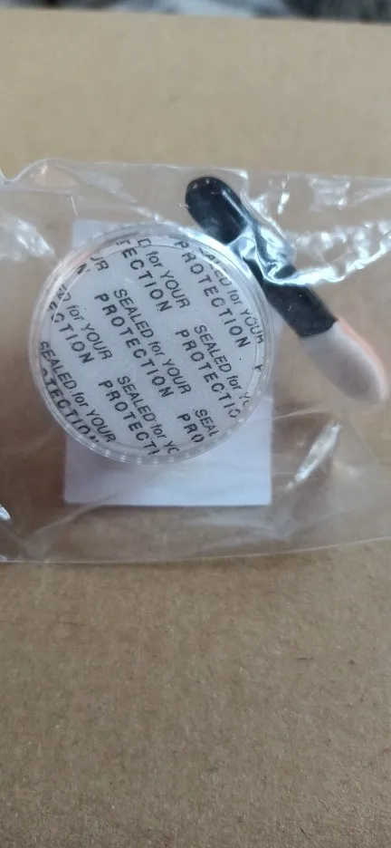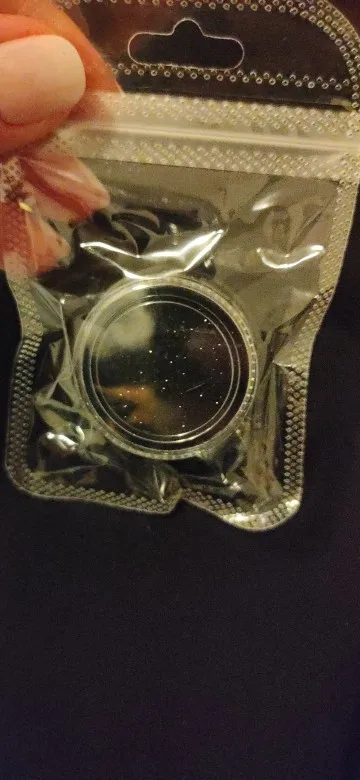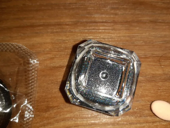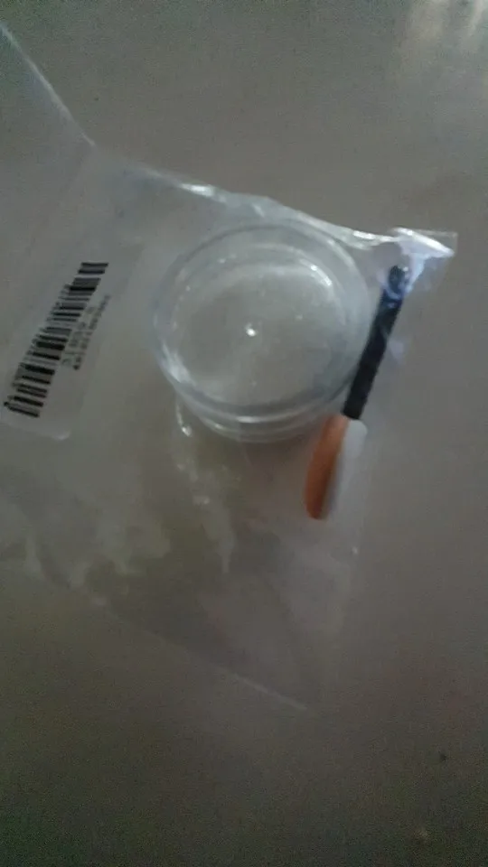 Баночка, большая, порадовало. Блестки красивые, думаю, что их нужно перекрывать топом, так как от щетки участками отпадают. Учитывая, что заказывала 11 ноября, посылка пришла очень быстро, чуть больше 2х недель. за это большое спасибо.