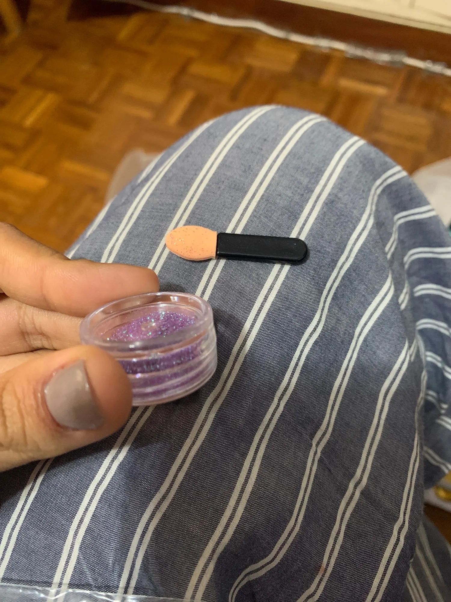 Пыльца красивая. Конечно не так уж она блестит как на фото у покупателя, но думаю смотреться будет хорошо. До Москвы ровно месяц. Баночка не глубокая, так что хватит не на долго.