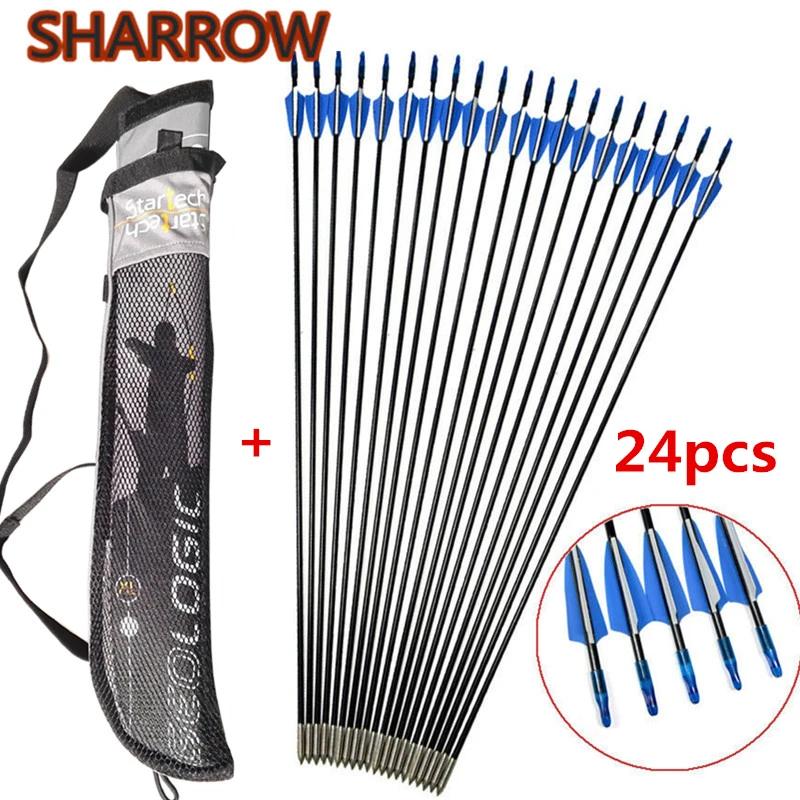 24 шт. 31 "стрелы из стекловолокна для стрельбы из лука позвоночника 900 стекловолокна стрелы с колчан лук для стрельбы тренировочные аксессуары