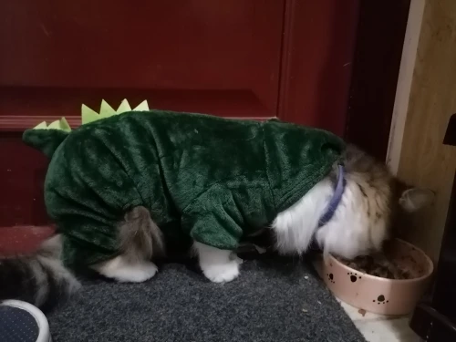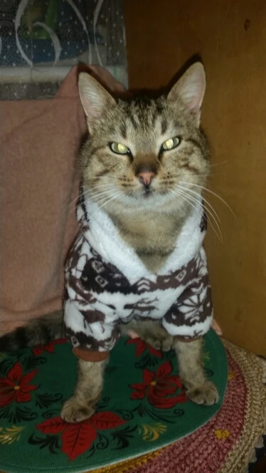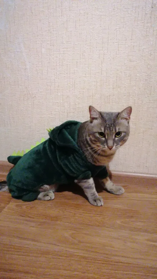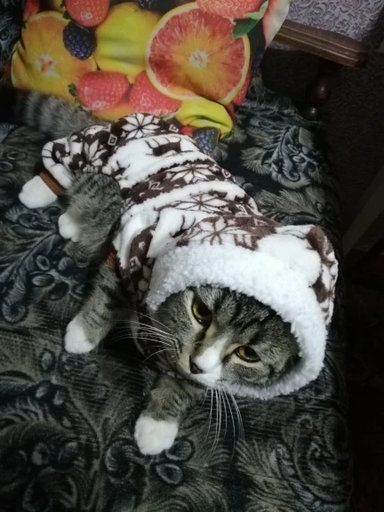 для моей худенькой кошки можно было м взять чтобы в оптяг было и она не смогла снять костюм, но а так мне нравится, когда буду зимой её в переноске таскать надену его чтоб не было холодно, ну или когда к бабушке поеду, у неё холодно дома