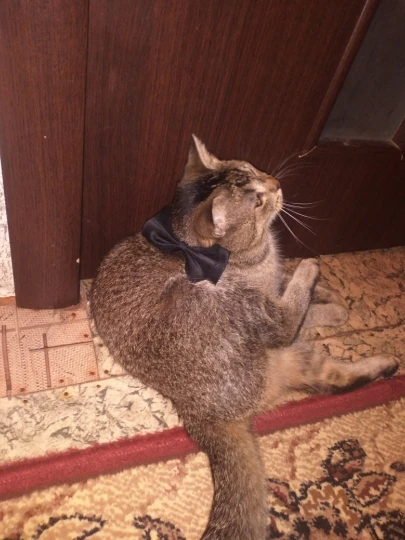 Очень мило, моя кошка-ребенок два с половиной месяца, и размер S ей подходит.
