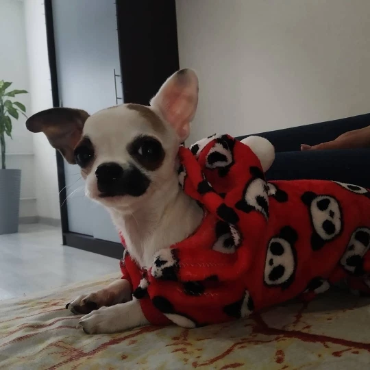 Очень быстрая доставка. В Украину за две неделиЧихуахуа 2700, чуть длинновато по спинке, буквально 2 см. Можно пробовать чуть меньше на такой вес. На лапках резинки, которые держат костюм. Первый костюм, который собака хочет одевать. Это радует. 100% рекомендую!!!! Спасибо продавцу.