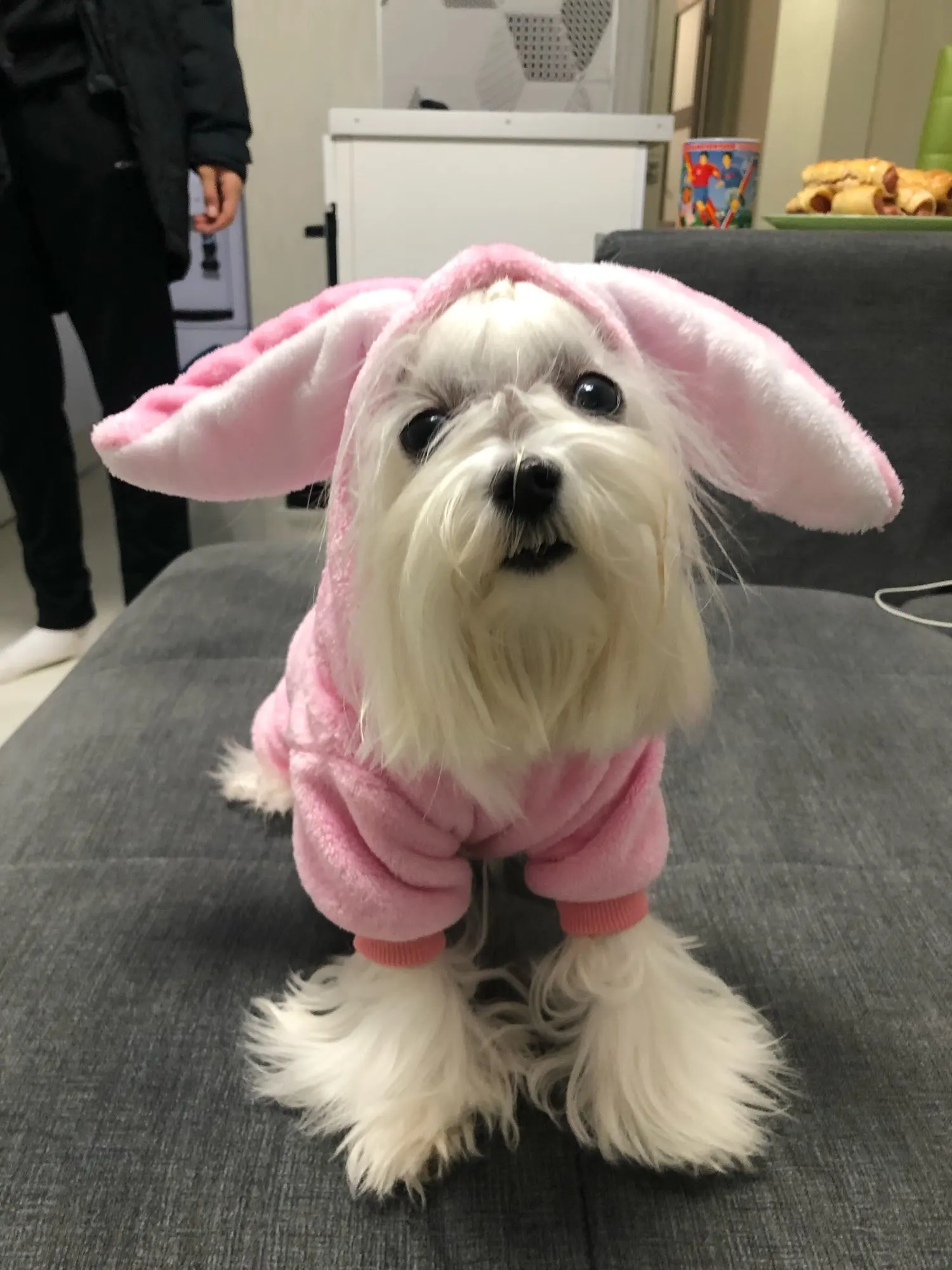 Очень приятный мягкий комбез .Но нам не подошёл .Мал Нужно было брать на чихуа 8 месяцев , 1.5 кг.,- L