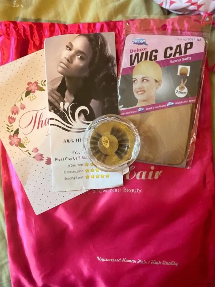Волосы абсолютно Потрясающие. Без запаха, волосы очень мягкие и соответствуют длине. Большая голова или маленькая голова дружелюбны. Связь с продавцом была выдающейся. Даже при условии шляпки парика, ресниц и обмотки головы по краям.