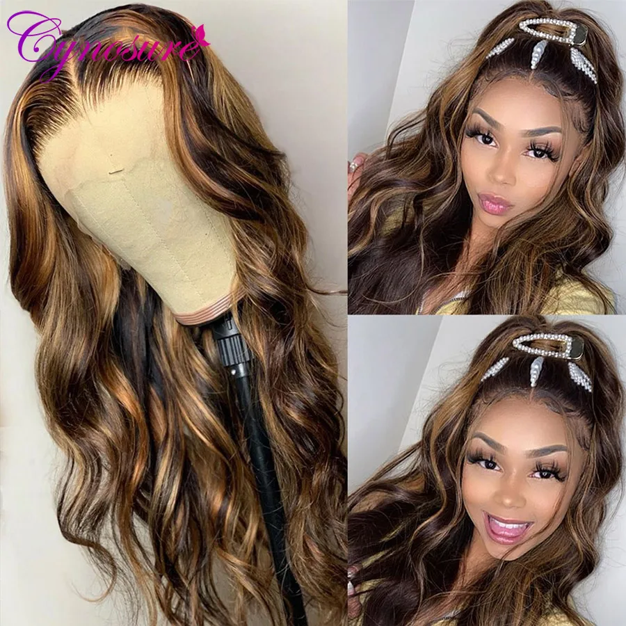Парик Cynosure #427 из натуральных человеческих волос с цветными кружевными передними париками для черных женщин 180% 13x4 перуанские Волнистые передние волнистые волосы Remy
