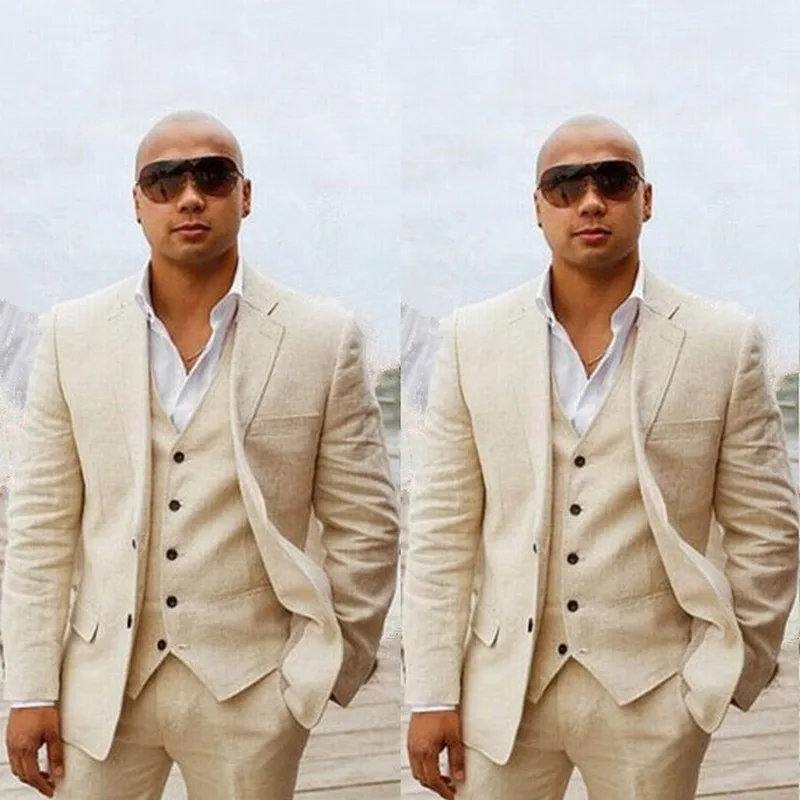 Комплект из 3 предметов, льняной облегающий пиджак для жениха, для пляжа, свадьбы, Привлекательные мужские костюмы