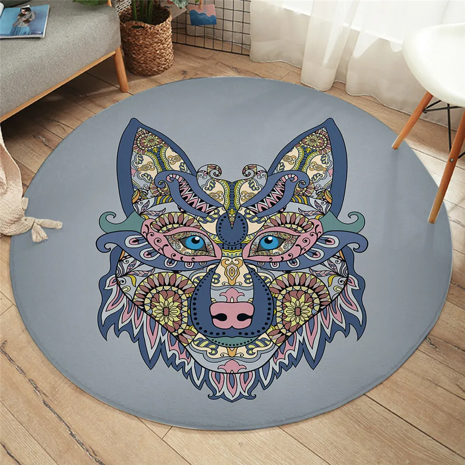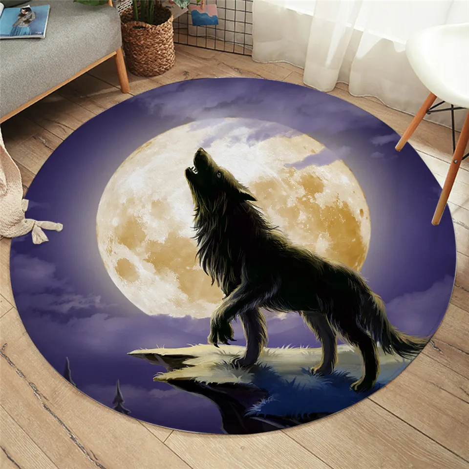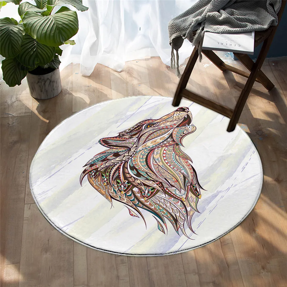 Круглый коврик BeddingOutlet с изображением диких животных, Воющий волк, разноцветный коврик для гостиной, нескользящий 3D небольшой коврик, Прямая поставка