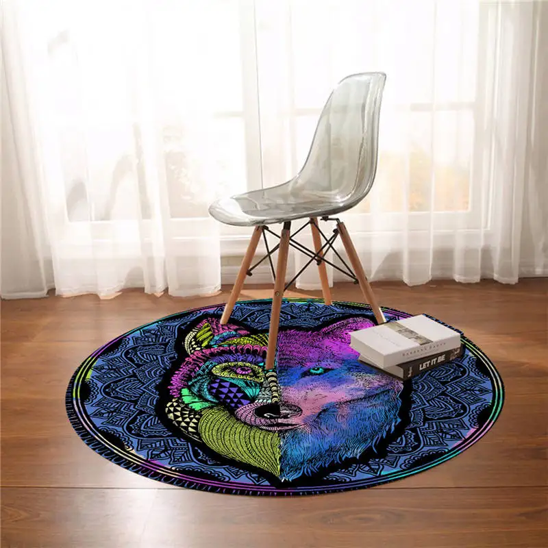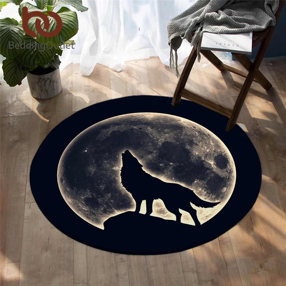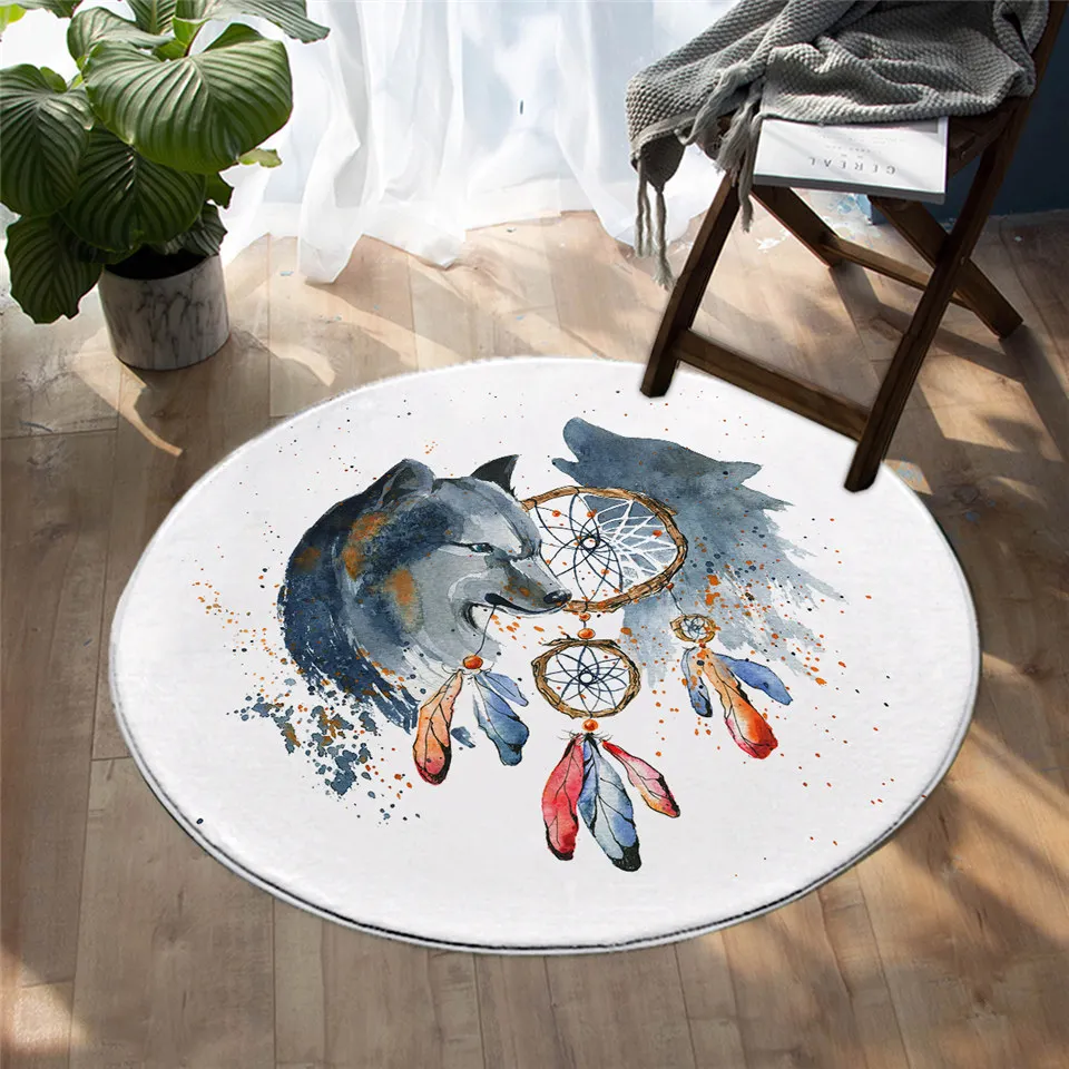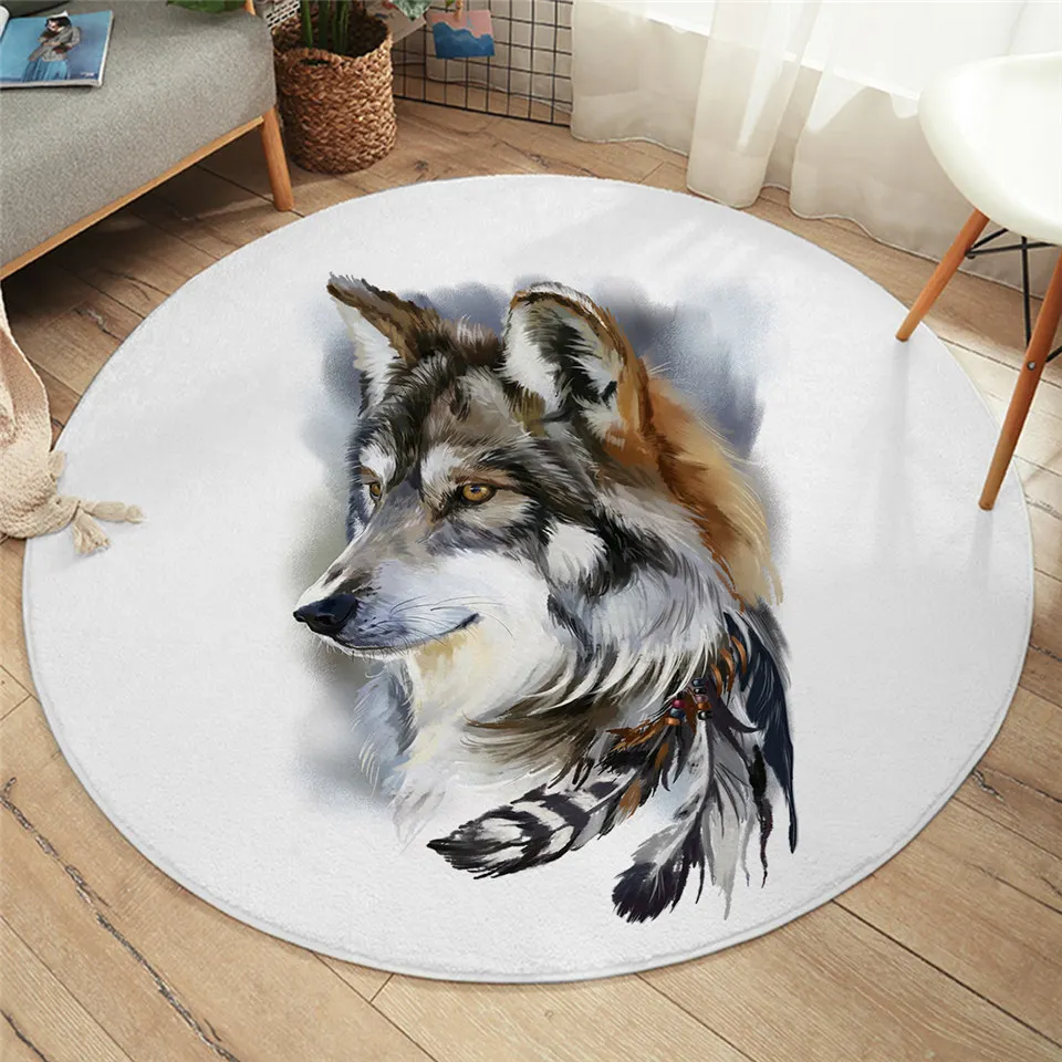 Круглый коврик BeddingOutlet с изображением диких животных, Воющий волк, разноцветный коврик для гостиной, нескользящий 3D небольшой коврик, Прямая поставка