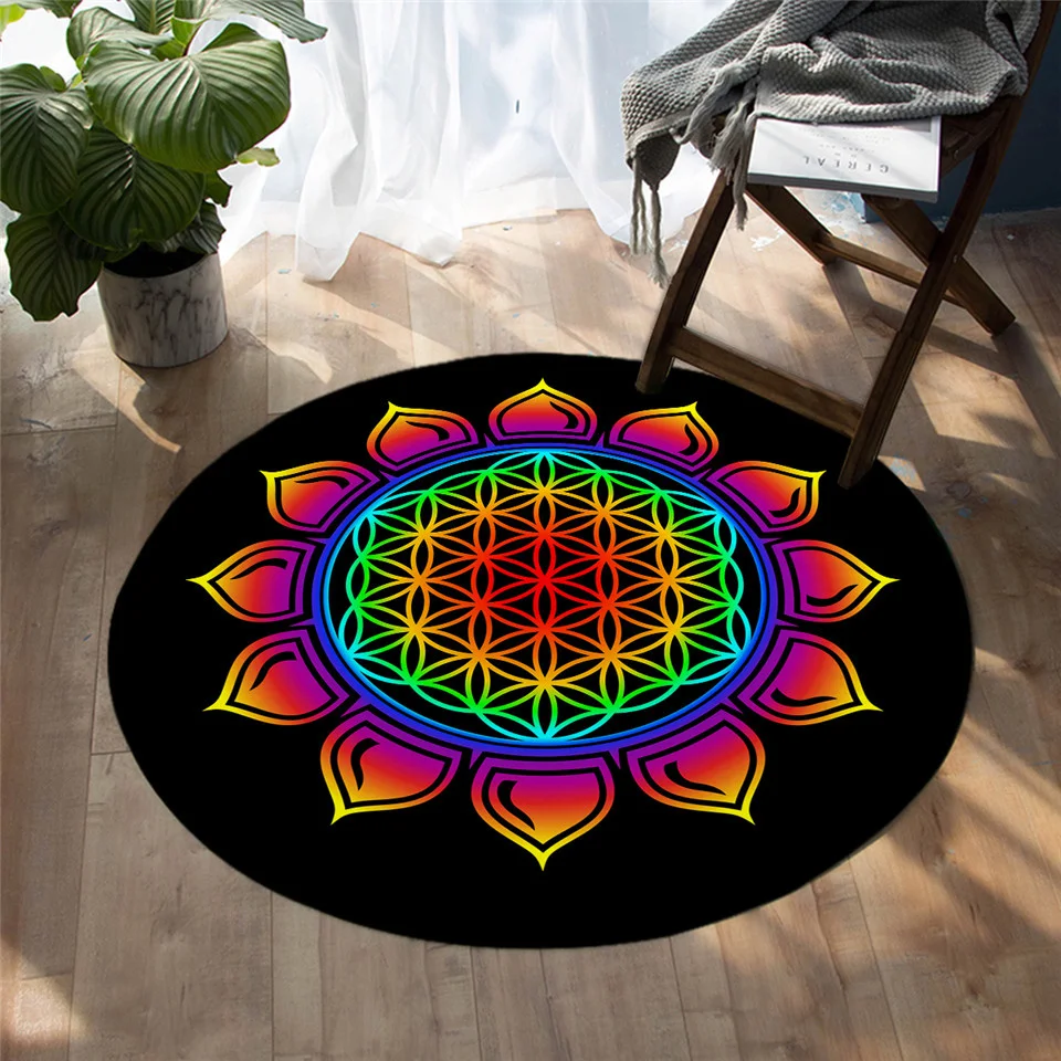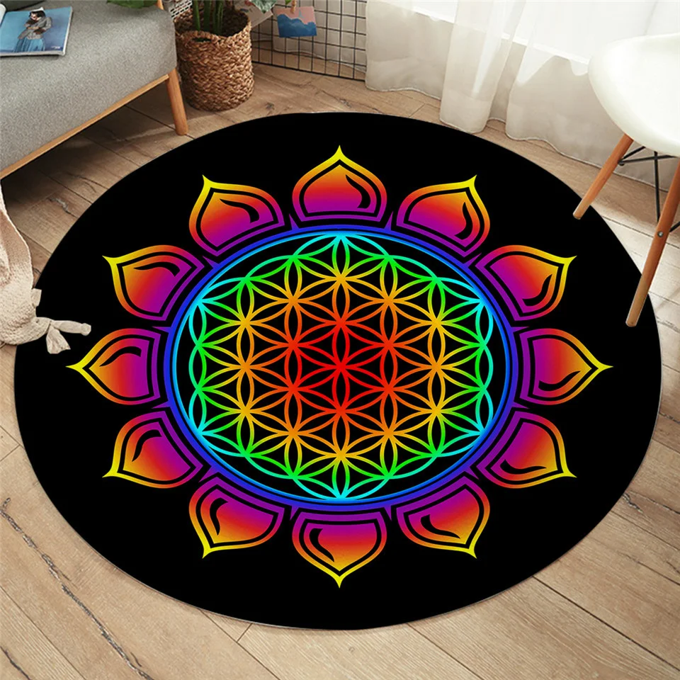 Круглая чакра BeddingOutlet, ковры для гостиной, тема дзен, домашний ковер, цветной цветок жизни, напольный коврик для спальни, домашний декор