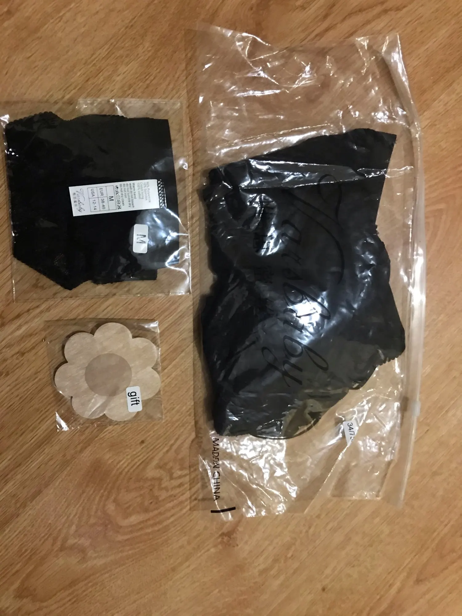 Если бы можно было поставить 10 звёзд, я бы обязательно это сделала! Заказ дошёл за рекордное количество дней - 9. Заказала 11, пришёл 20. Я в шоке. Само белье просто умопомрачительное! Комплект трусов, оба подошли на ОБ - 95. Грудь без чашек, но смотрится невероятно (взяла 80B на ОГ - 87). В общем, сказать, что я довольна - это значит ничего не сказать. Девушки, не сомневайтесь, берите обязательно! А я буду заказывать у данного продавца и дальше) В подарок получила стикеры на грудь. Не знаю где пригодятся, но приятно. Трусы лень фоткать на себе, но смотрятся они крутооо!