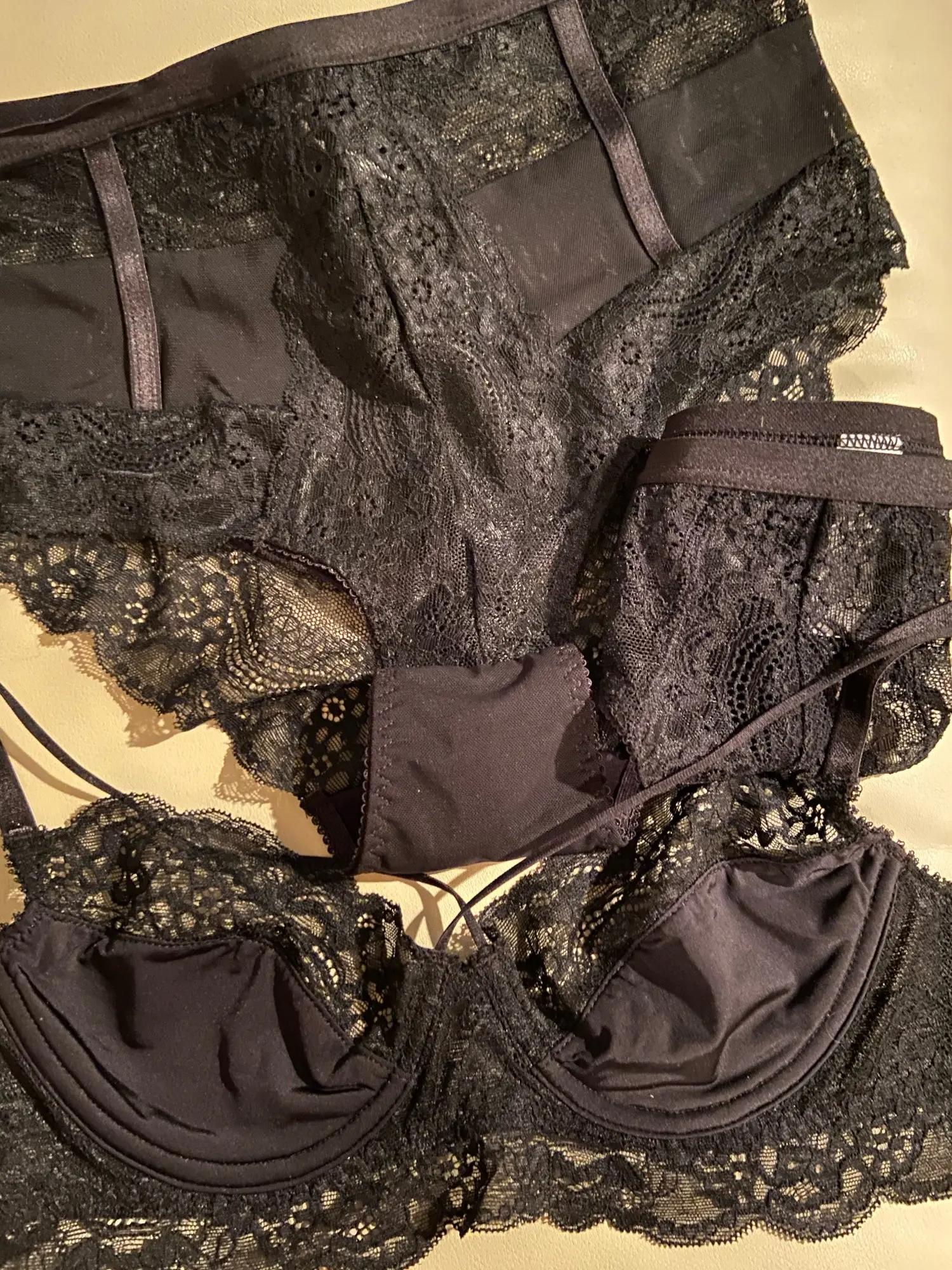 белье красивое,кружево хорошего качества.единственный момент,что я не поняла про лифчик,он мягкий,без поролона.может для какого то это важный момент