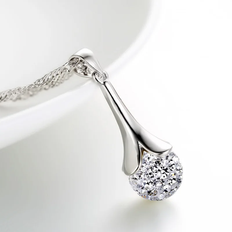 Ожерелье из серебра 925 пробы с круглым австрийским кристаллом