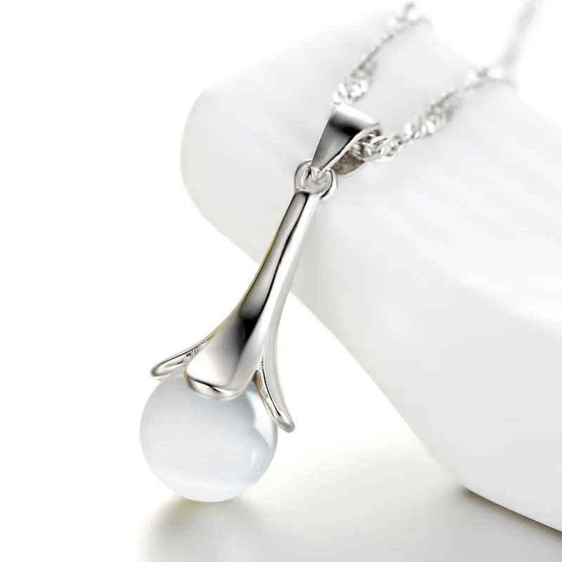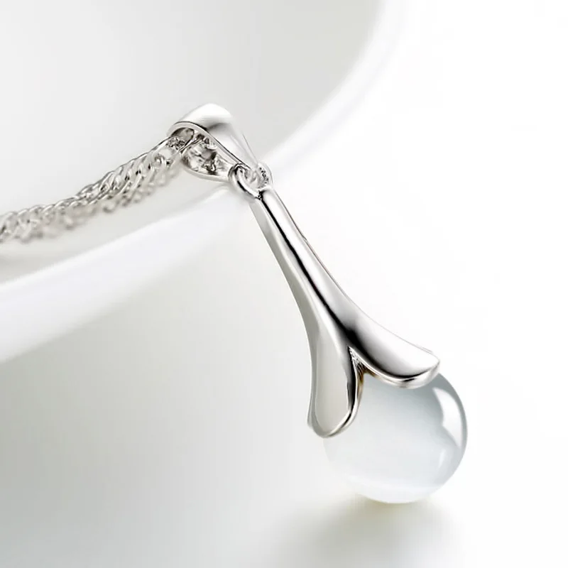 Серебряный цвет капля воды удачи лист красный черный камень жемчуг Опал хрустальный шар кулон ожерелье ювелирные изделия для женщин