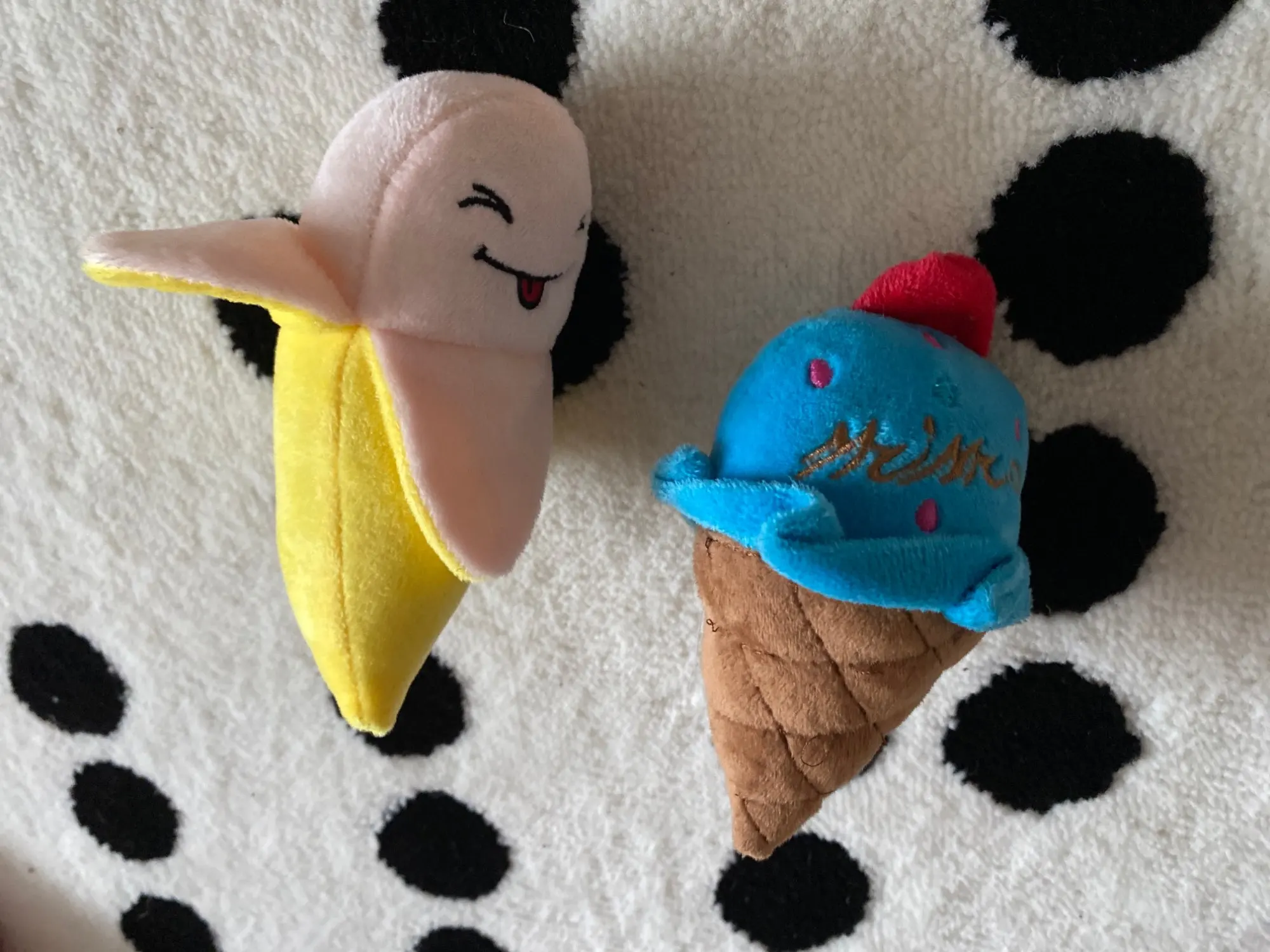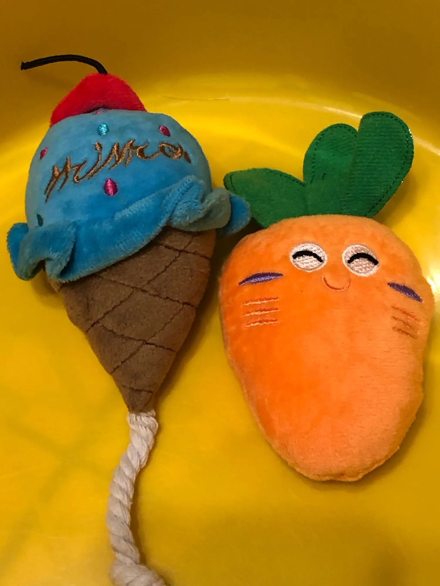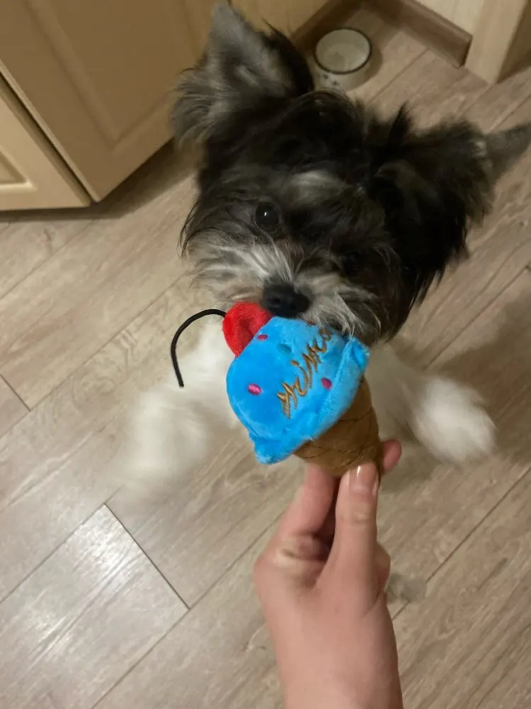 Моему йорку больше понравились яблочко и мороженко.спасибо,очень милые игрушки))
