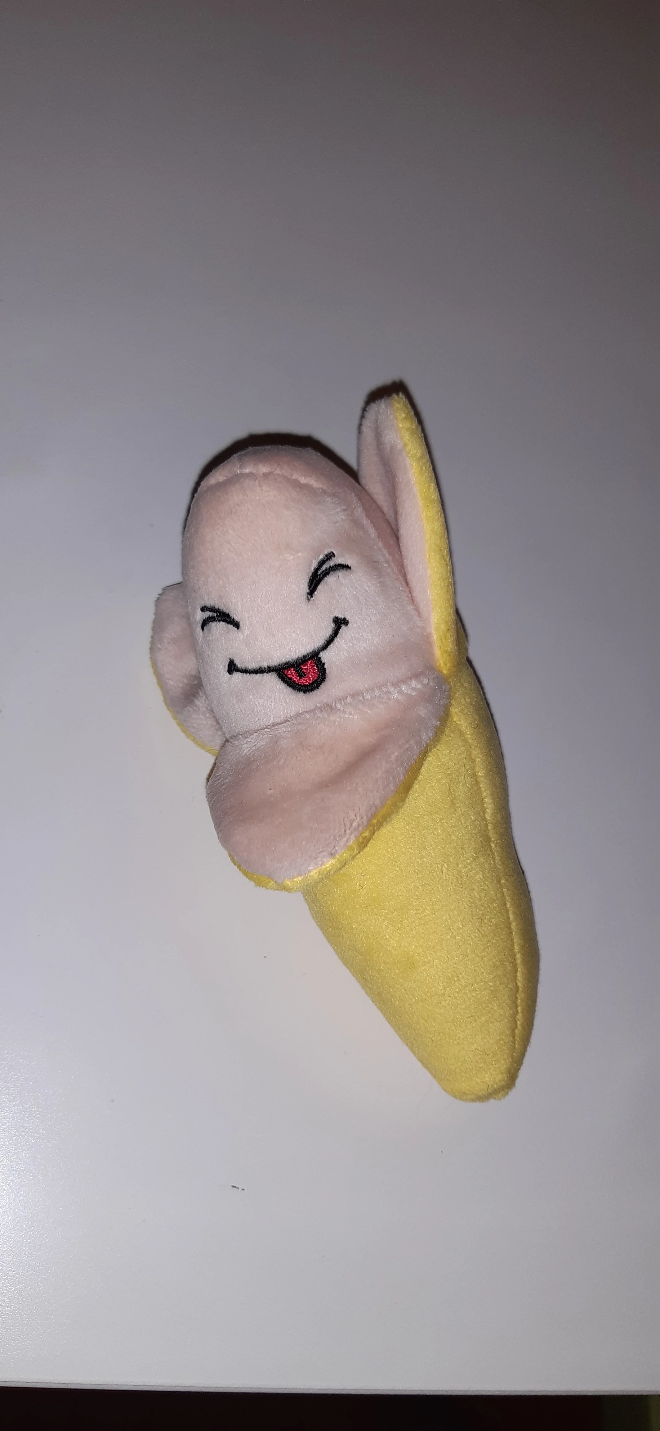 Классная игрушка, как уже писали, шелестят кожура от банана)))) и пищалка внутри! Доставка в Италию около месяца. Спасибо!
