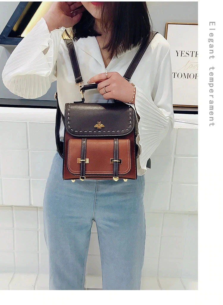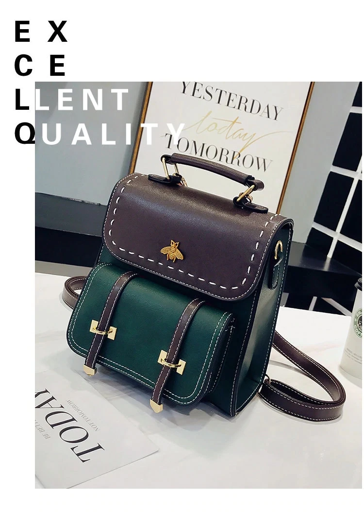 Женский рюкзак, школьный рюкзак с Пчелкой, для колледжа, качественный винтажный кожаный женский рюкзак в стиле преппи, сумка для путешествий, рюкзак, Прямая поставка