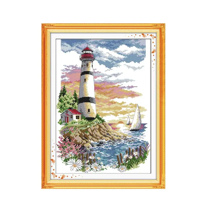 Joy Sunday Морской Маяк наборы для вышивки крестиком с маленькими пейзажами, напечатанные китайские счетные вышивки, украшения для рукоделия для дома