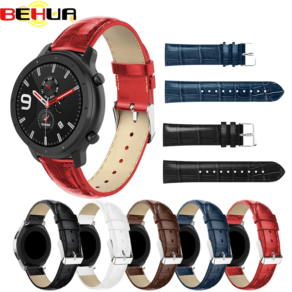 Кожаный браслет для Xiaomi Amazfit GTR 47 мм GTR 2 Stratos 2 2 S 3 ...