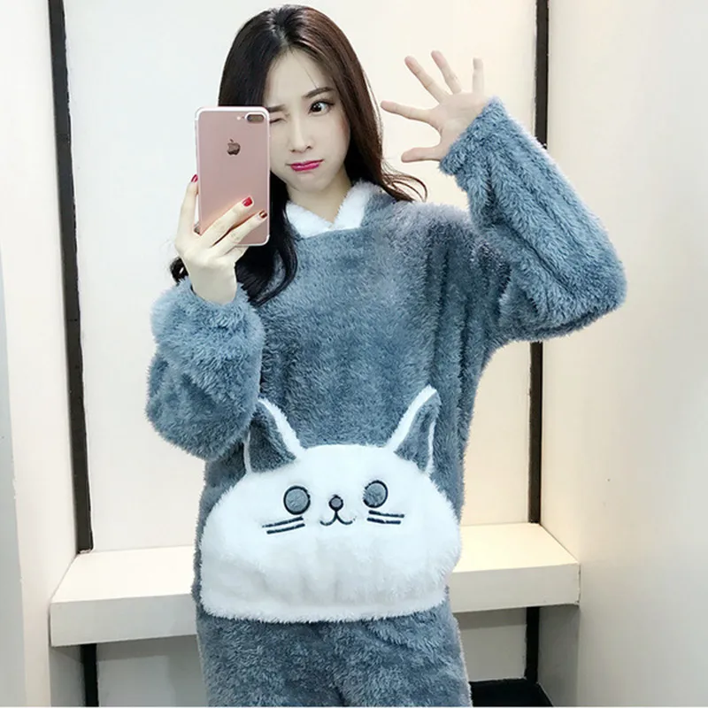 Женская Фланелевая пижама JULY'S SONG, зимние милые розовые пижамные комплекты, пижамы с мультяшными животными, толстая одежда для сна, повседневная женская домашняя одежда