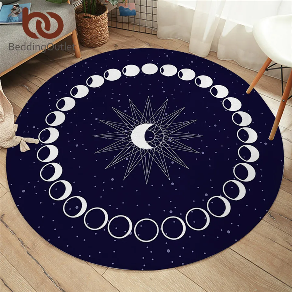 Круглый ковер BeddingOutlet Eclipse, ковер с Луной и звездами для гостиной, нескользящий коврик, синие декоративные напольные коврики, 150 см