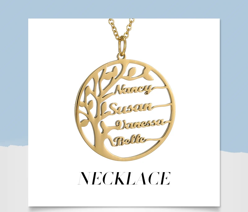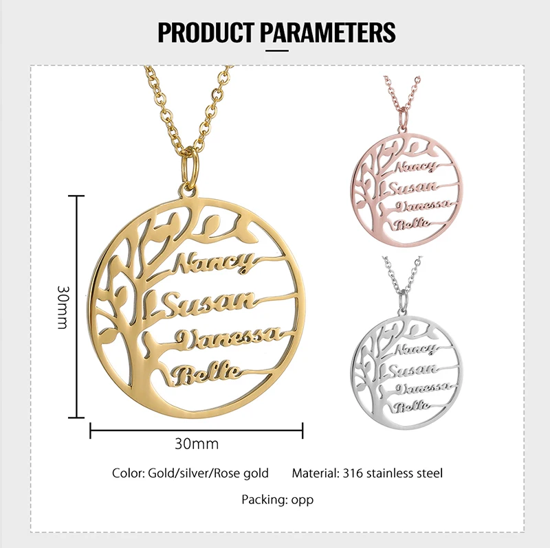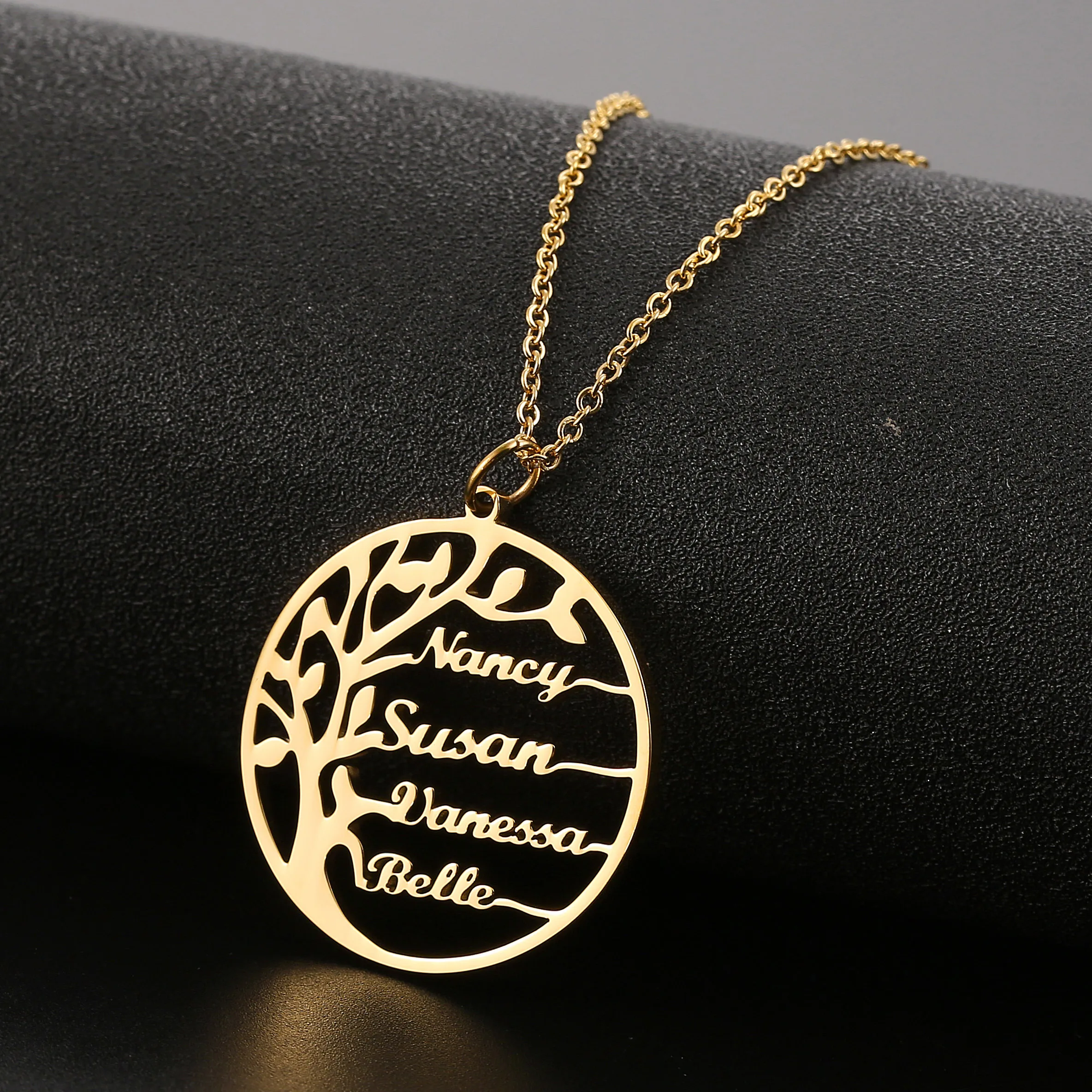 Ожерелье с именем на заказ, женское ожерелье с деревом жизни, ожерелье из нержавеющей стали с персонализированными буквами, именная табличка, семейные украшения, подарки