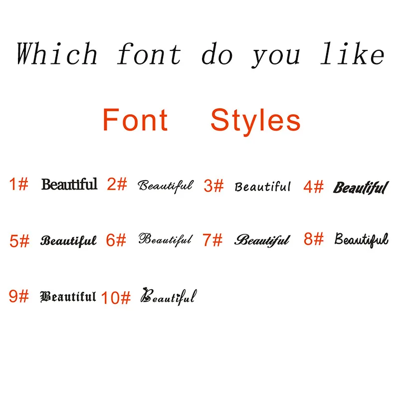 1. Дорогой друг, пожалуйста, оставьте свое пользовательское имя в комментариях и выберите тип шрифта, который вам нравится, когда вы размещаете заказ. Если вы не пришлете нам имя и шрифт в течение 24 часов, мы должны изготовить товар так же, как на фотографии и стиль шрифта. 2. Если вы хотите изменить шрифт или другую информацию, пожалуйста, сообщите нам в течение 24 часов, потому что после 24 часов, мы начали производство. Пожалуйста, поймите. 3. Мы предлагаем небольшое количество онлайн-заказа и производство большого количества. Для заказа небольшого количества, вы можете непосредственно разместить заказ онлайн, для большого количества заказа, пожалуйста, свяжитесь с нами, и мы предложим вам прайс-лист FOB, почти все товары в нашем магазине могут быть изготовлены на заказ. 4. Если вы заказываете более одного товара, пожалуйста, используйте корзину в верхней части веб-сайта, это поможет вам рассчитать вес вместе в одной посылке и сэкономить больше стоимости доставки. 5. Мы можем предложить информацию, которую вы хотите, и помочь в таможенном оформлении. Но мы не несем пошлины. Пожалуйста, знайте это. 6. Пожалуйста, предоставьте эту информацию как можно скорее, как только вы разместите заказ, чтобы вы могли получить его в ближайшее время, спасибо. 7. Ваше удовлетворение и положительные отзывы очень важны для нас. Пожалуйста, оставьте положительные отзывы и 5 звезд, если вы удовлетворены нашими товарами и услугами. Если у вас есть какие-либо проблемы с нашими товарами или услугами, пожалуйста, не стесняйтесь связаться с нами, прежде чем оставить отрицательный отзывы. Мы сделаем все возможное, чтобы решить любые проблемы и предоставить Вам лучшее обслуживание клиентов.