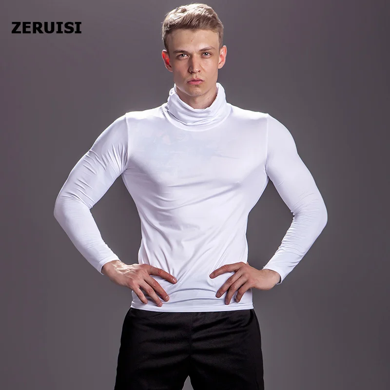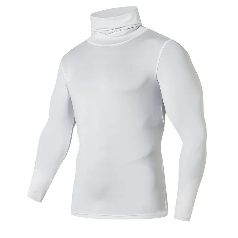 Однотонные компрессионные рубашки с высоким воротником, мужские футболки для бодибилдинга, бега, спортзала, топы для фитнеса, плотные Топы Рашгард