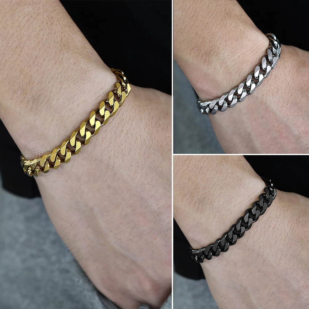 Браслеты из кубинской панцирной цепи для мужчин и женщин, ювелирные изделия из нержавеющей стали черного и золотого цвета, 3-11 мм, DKBB10