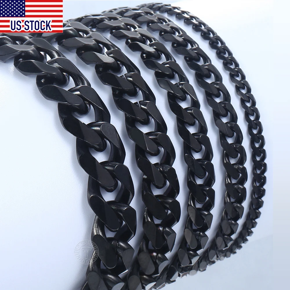 3-11mm Men's Bracelets Stainless Steel Curb Cuban Link Chain Black ...
