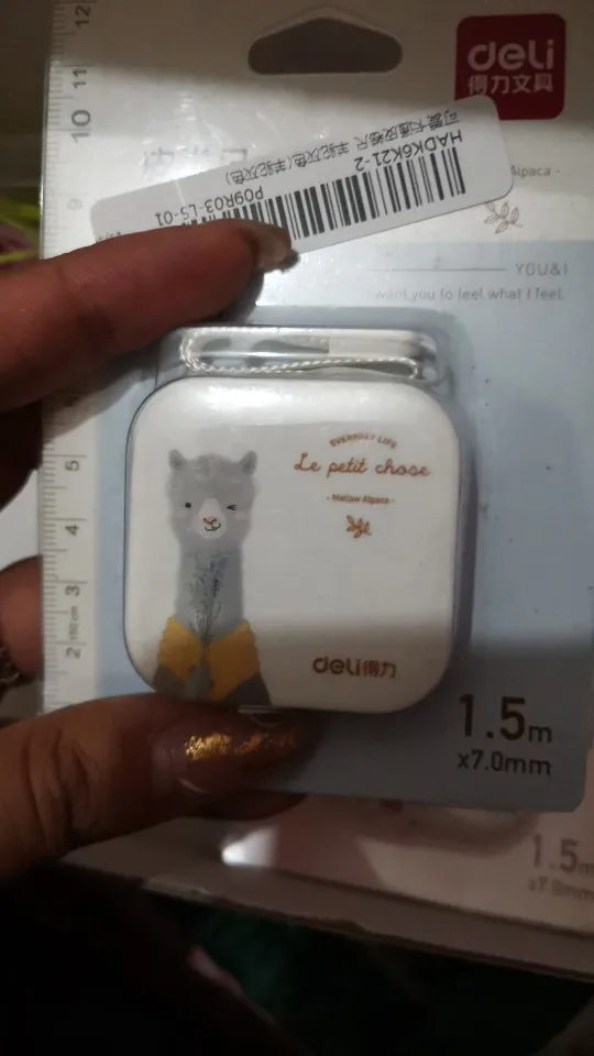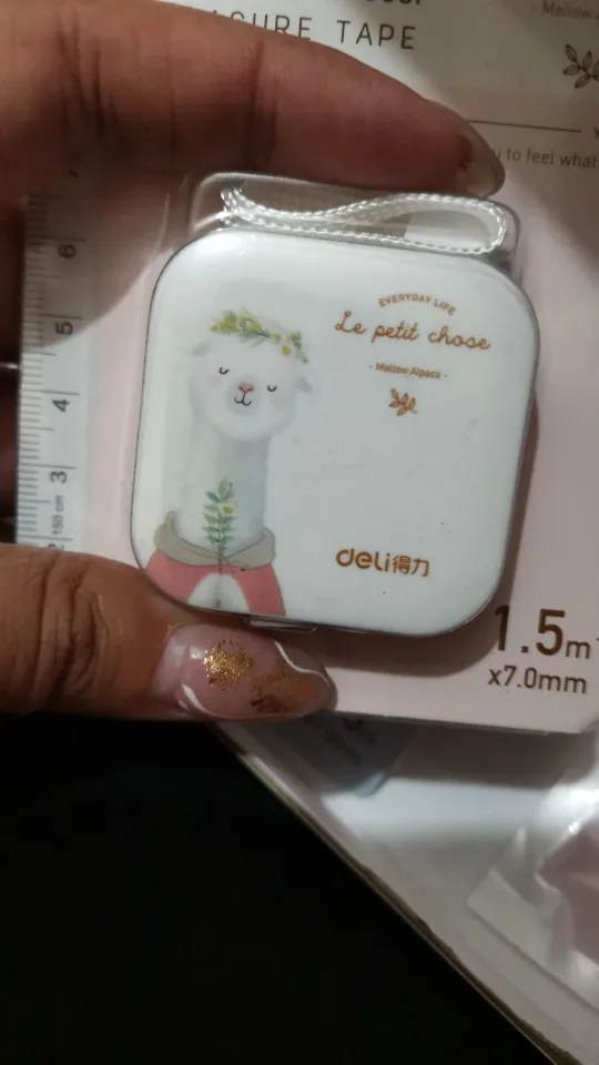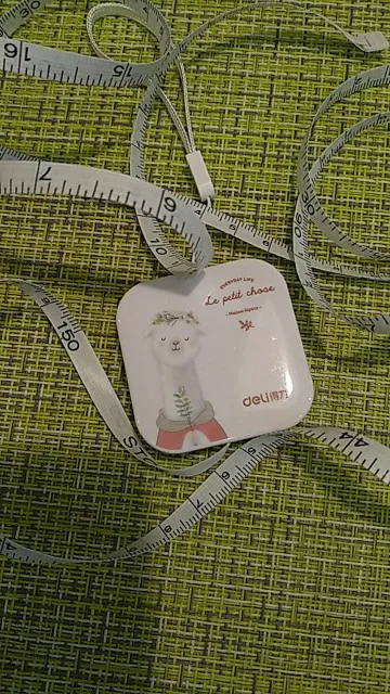 Аккуратная коробочка. С одной стороны лента размечена на сантиметры, с другой - на дюймы. С обратной стороны корпуса есть кнопка для сматывания ленты. Максимальная длина 150 см+. Сама лента мягкая, на ощупь напоминает виниловую скатерть. Со временем будет растягиваться.