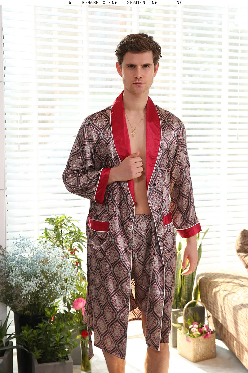 Ночная рубашка мужская атласная, комплект из 2 предметов, шорты, халат-кимоно, одежда для сна, повседневный домашний халат, размера плюс 3xl, 4xl, 5xl, на лето